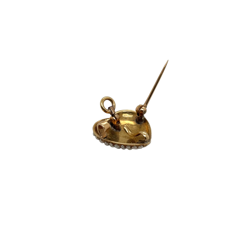 The heart-shaped dome is set with small seed pearls and measures 16 by 16.5 mm.Circa 1900s