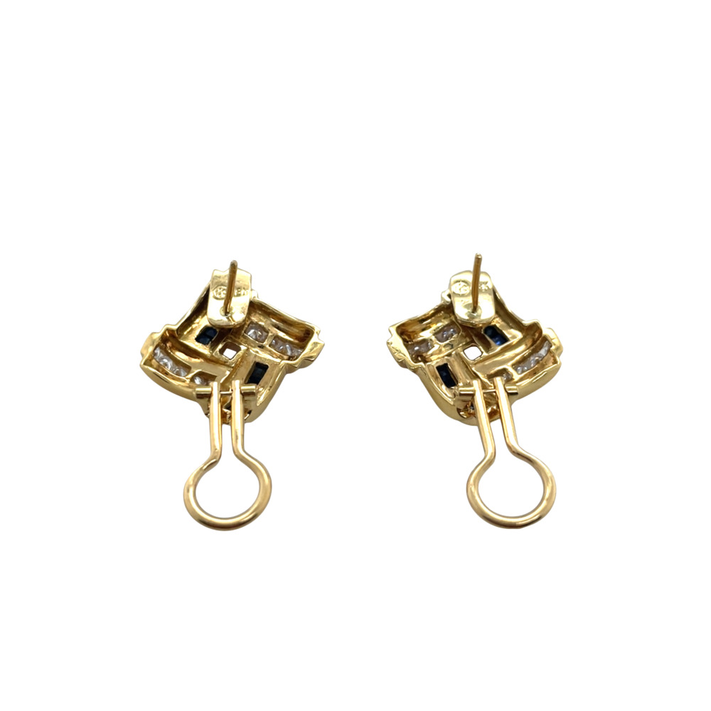 18K Yellow Gold Sapphire and Diamond Earrings