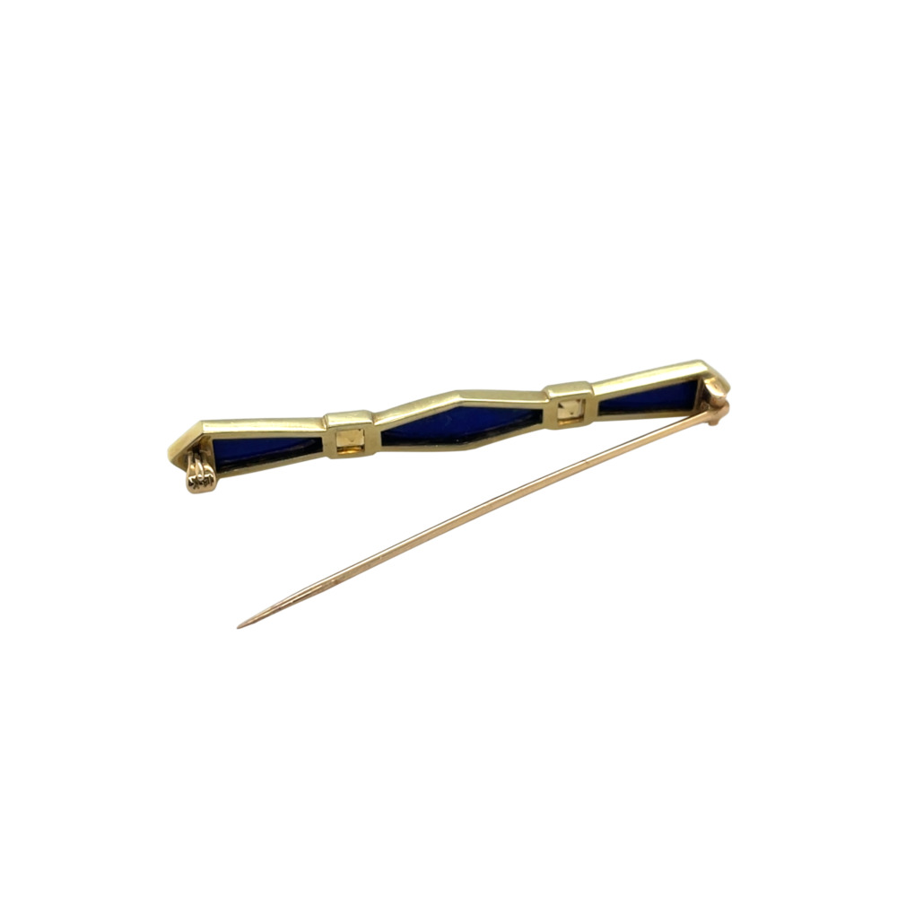 $750.0014K Yellow Gold Lapis and Citrine Bar Brooch