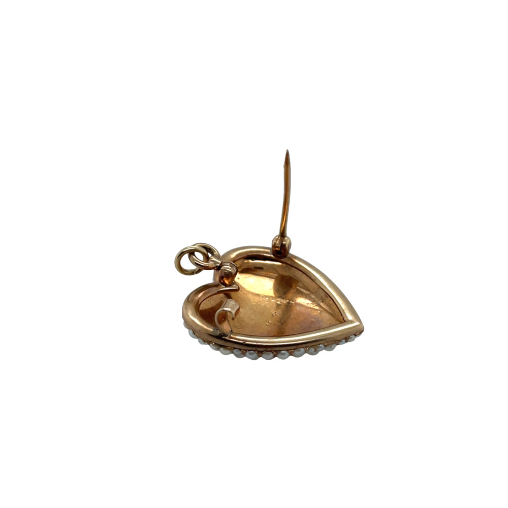 $895.00Antique 14K Yellow Gold Seed Pearl Heart Brooch-Pendant