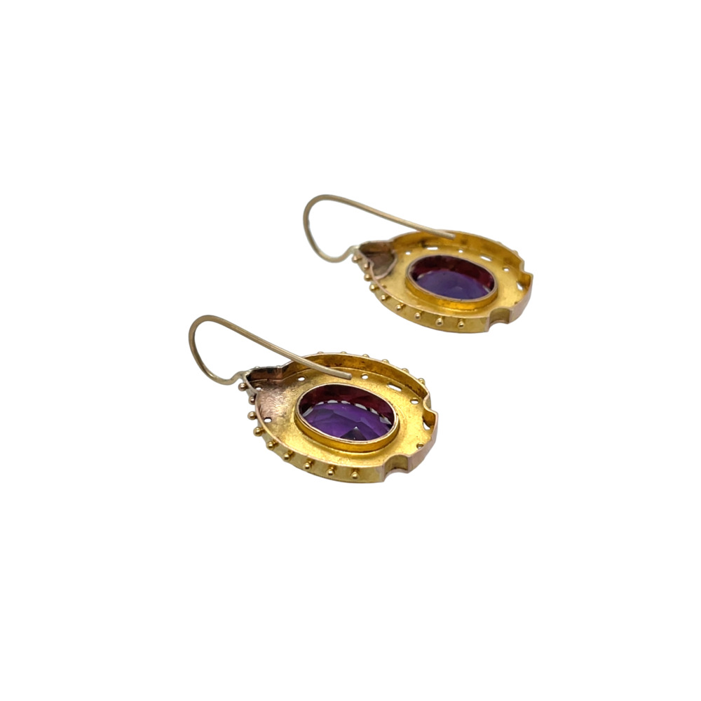 Victorian 14K Yellow Gold Amethyst Earrings