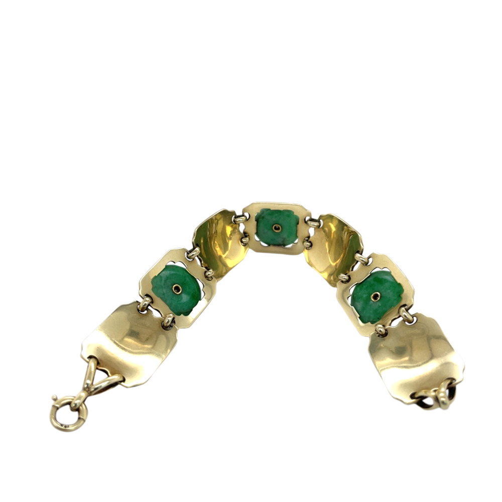 $7,500.00Art Deco 14K Yellow Gold Jade, Enamel, and Diamond Bracelet