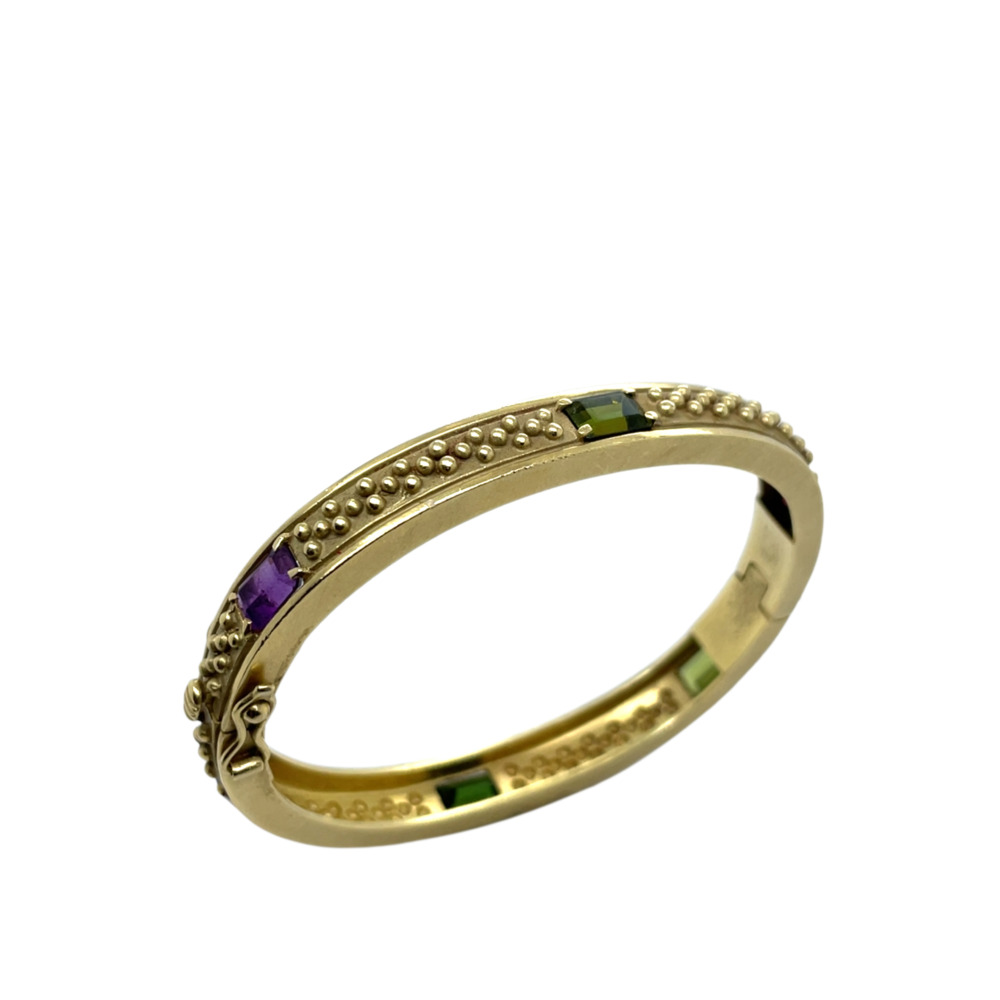 $4,950.0018K Yellow Gold Tourmaline, Amethyst, Peridot Bangle Bracelet