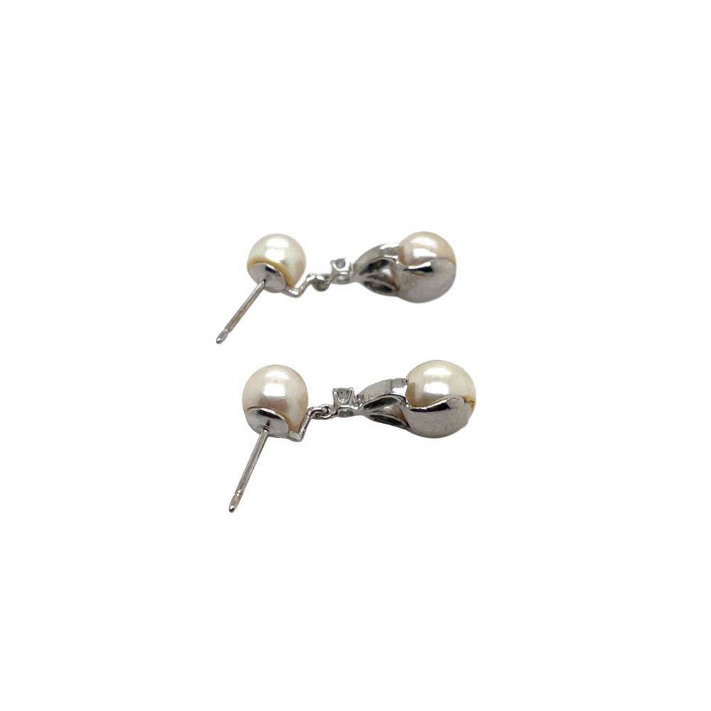 $875.0014K White Gold Pearl and Diamond Drop Earrings