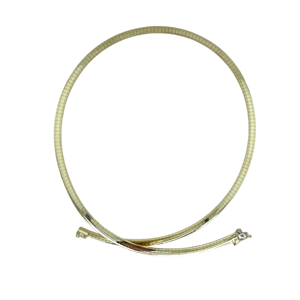 14 Yellow Gold Omega Necklace The half dome Omega style measuring 4mm wide and 16 inches long. Gross weight 17.3 dwts