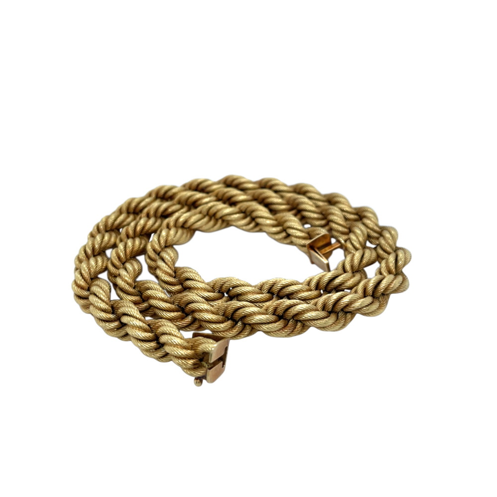 18K Yellow Gold Rope Necklace The rope style measuring 9.25mm wide, 21 inches long, weighing 39.3 dwts.