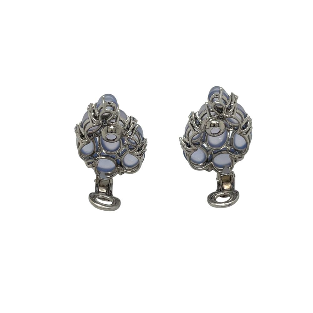 Verdura 18K White Gold Chalcedony Diamond Earrings