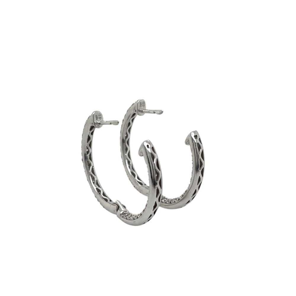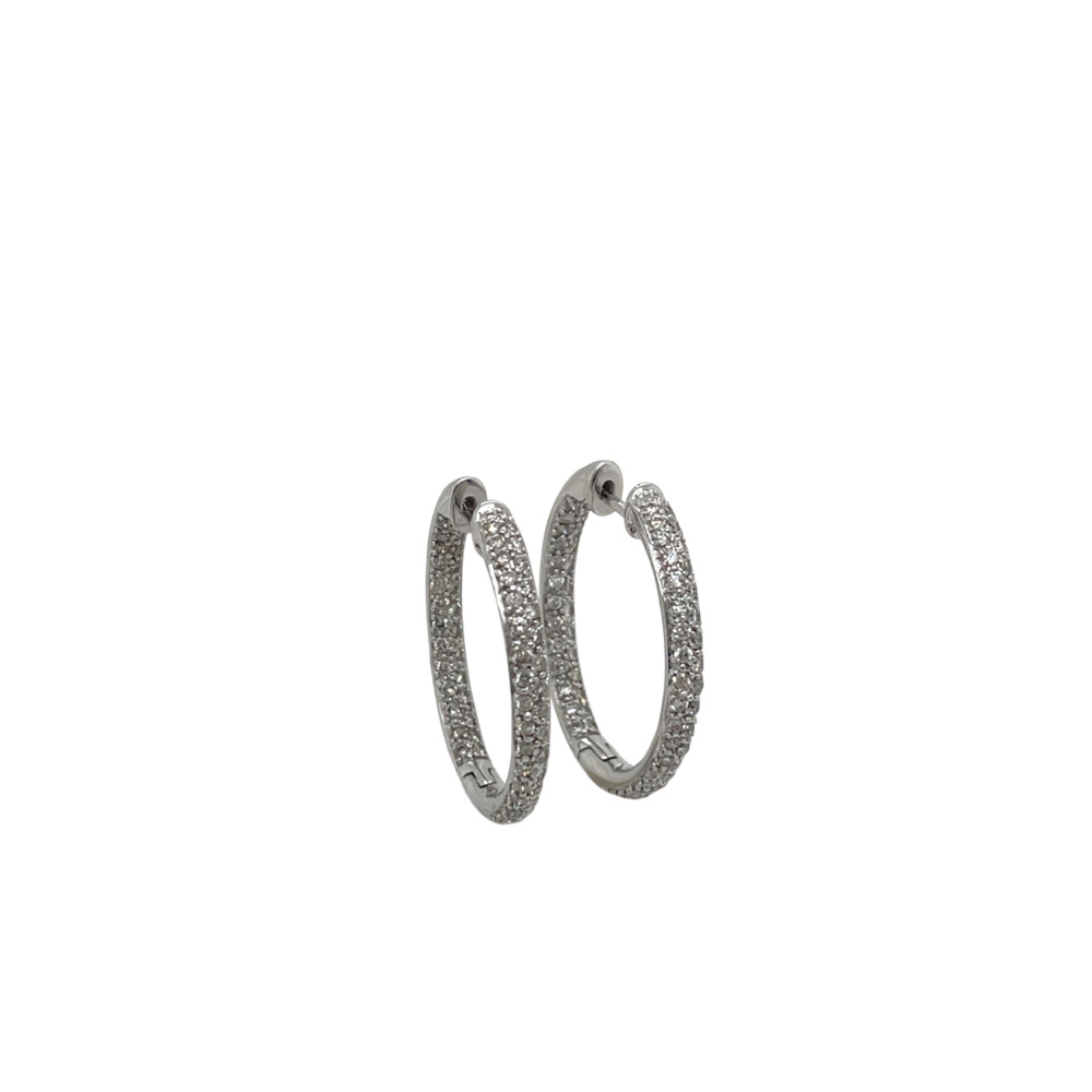 14K White Gold Diamond in-out Hoop Earrings