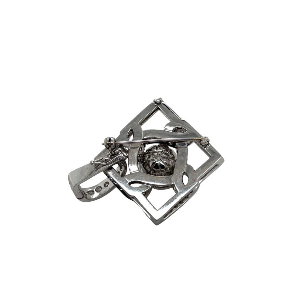 14K White Gold Tahitian Pearl and Diamond Brooch/Pendant