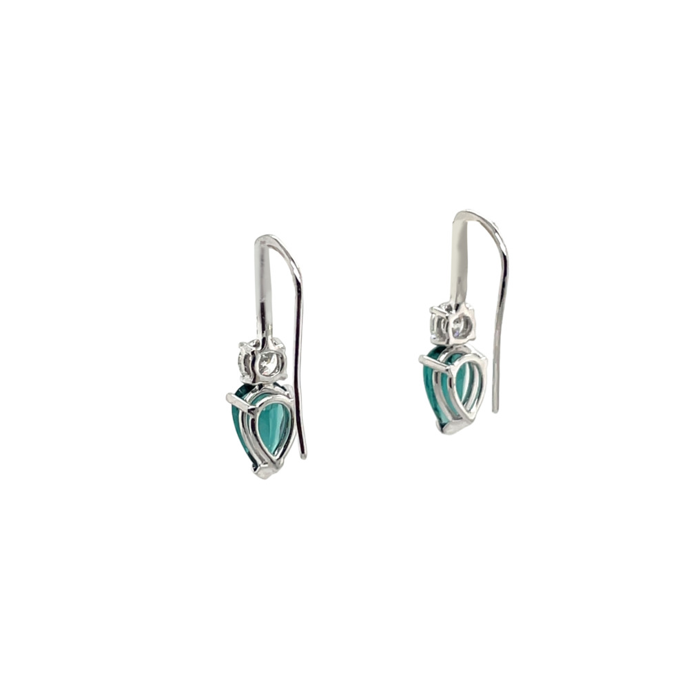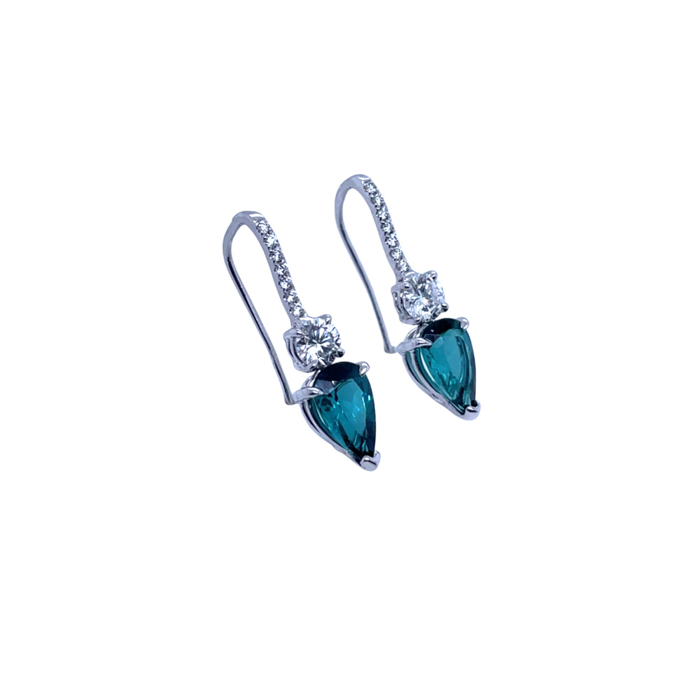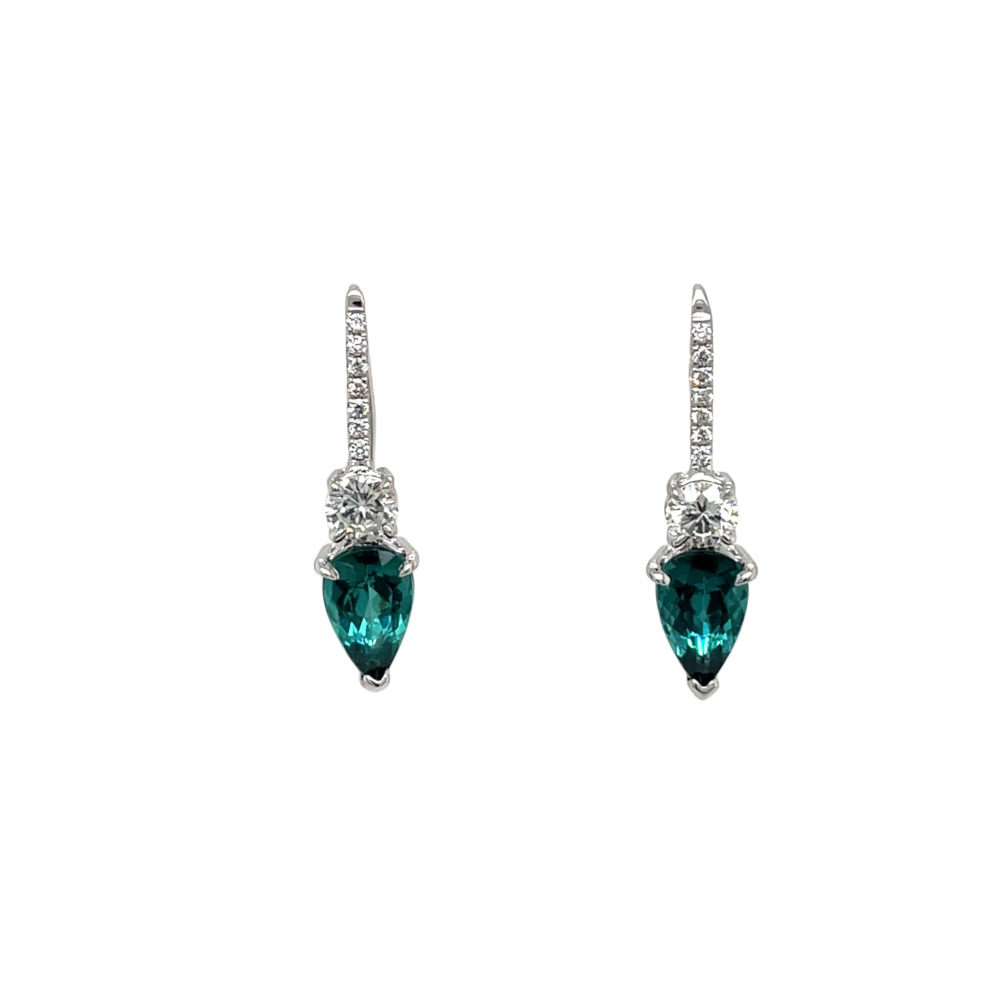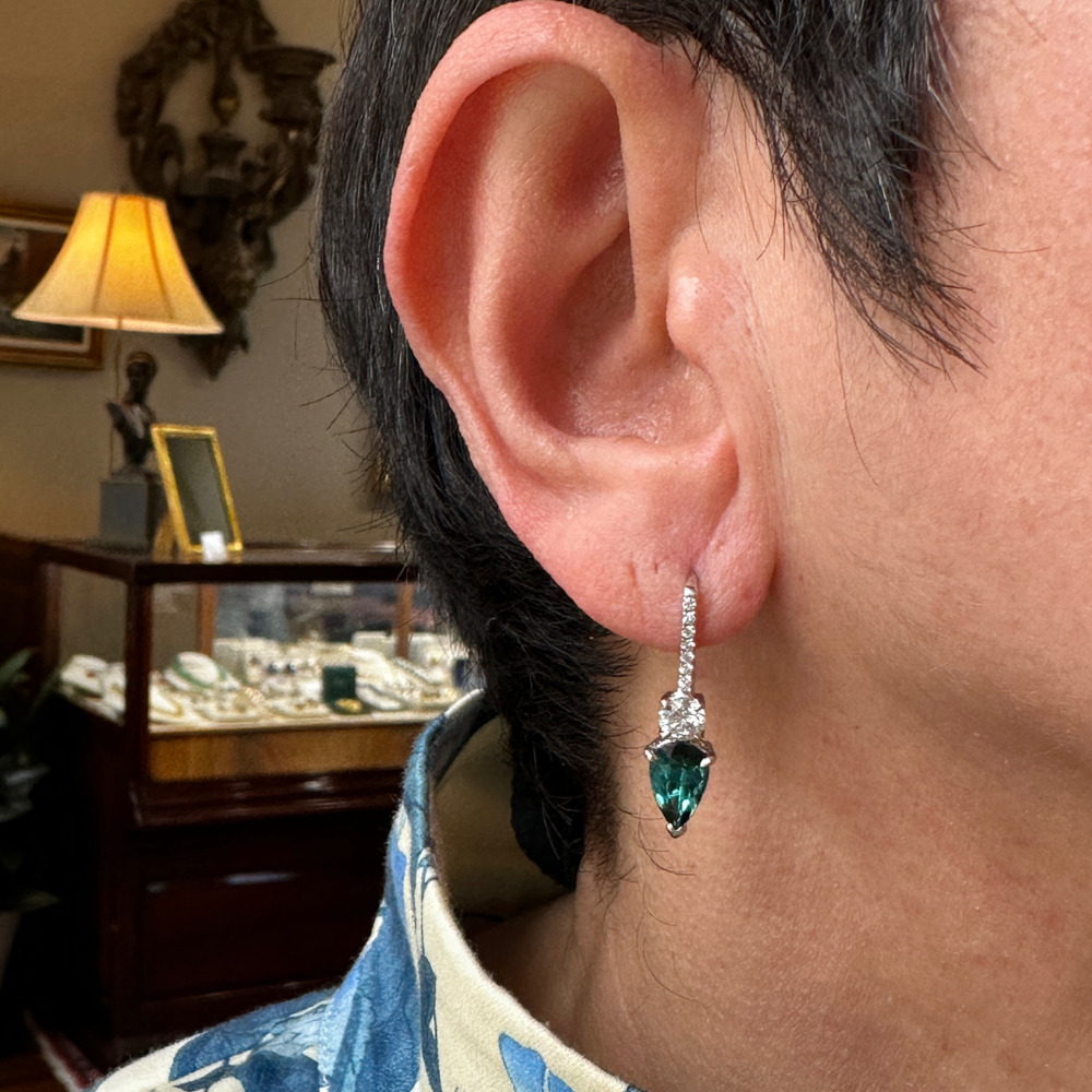 Set with two pear-shaped green tourmalines weighing a total of 2.79 carats and two round diamonds weighing approximately 0.90 carats, as well as small round diamonds weighing a total of 0.10 carats.