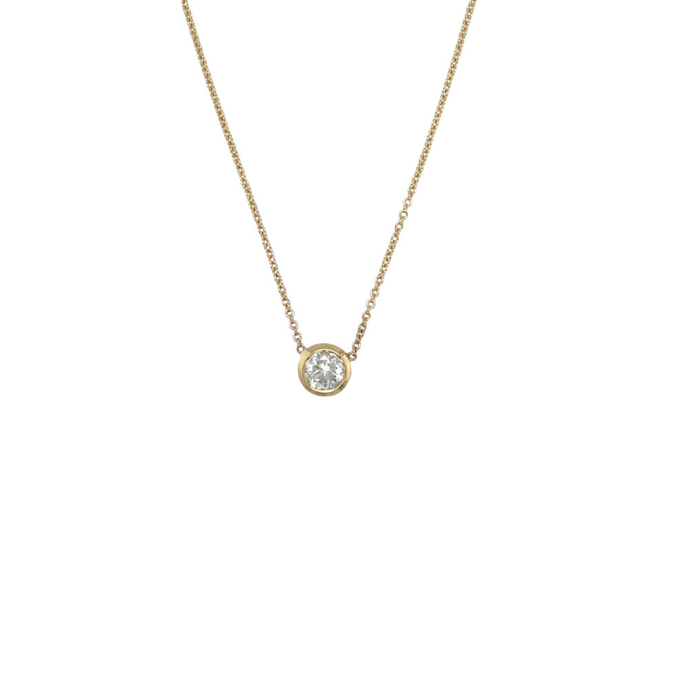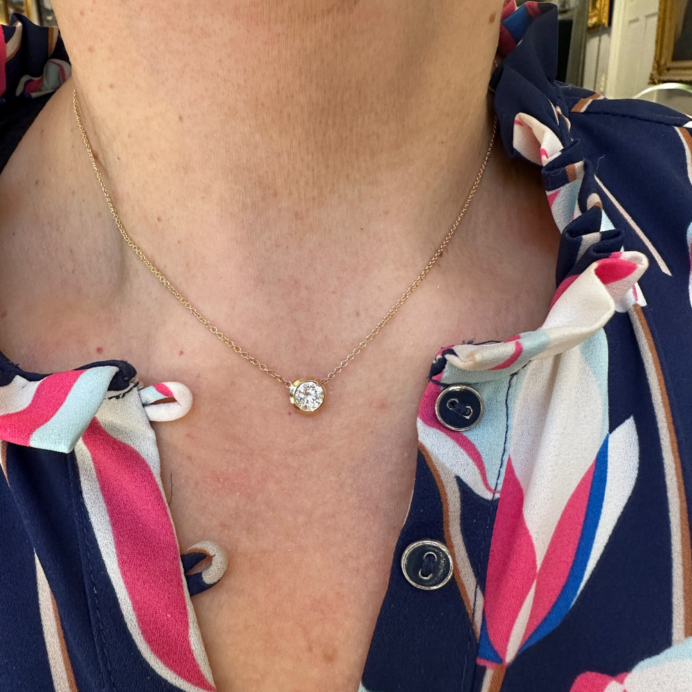 Bezel set with one old European-cut diamond weighing 0.61 carat, measuring 17 inches long.