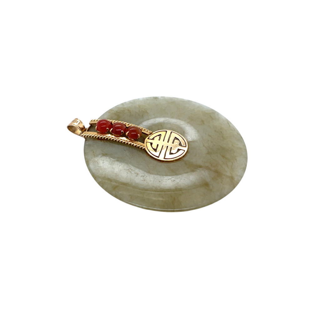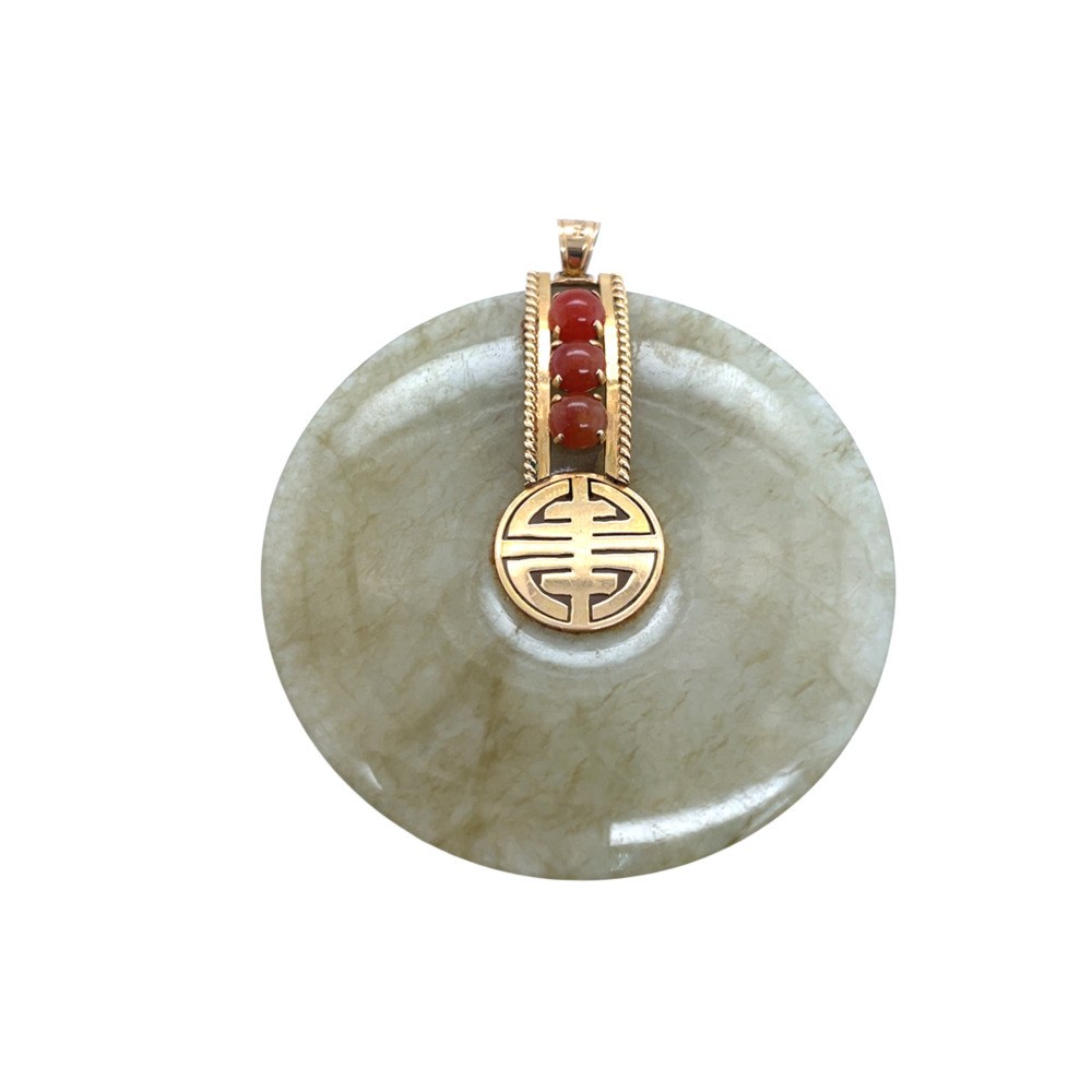 14K Yellow Gold Jade and Carnelian Pendant