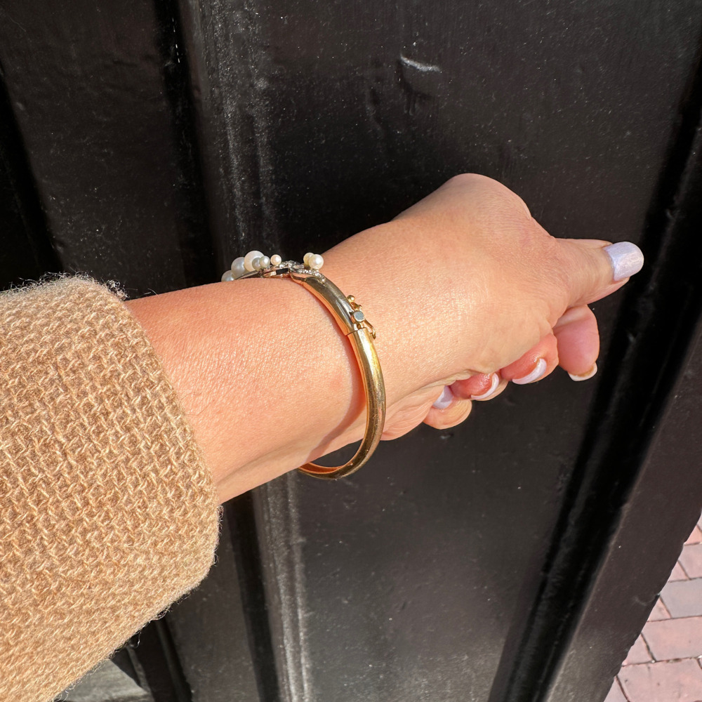 14K Yellow Gold Pearl and Diamond Bangle Bracelet
