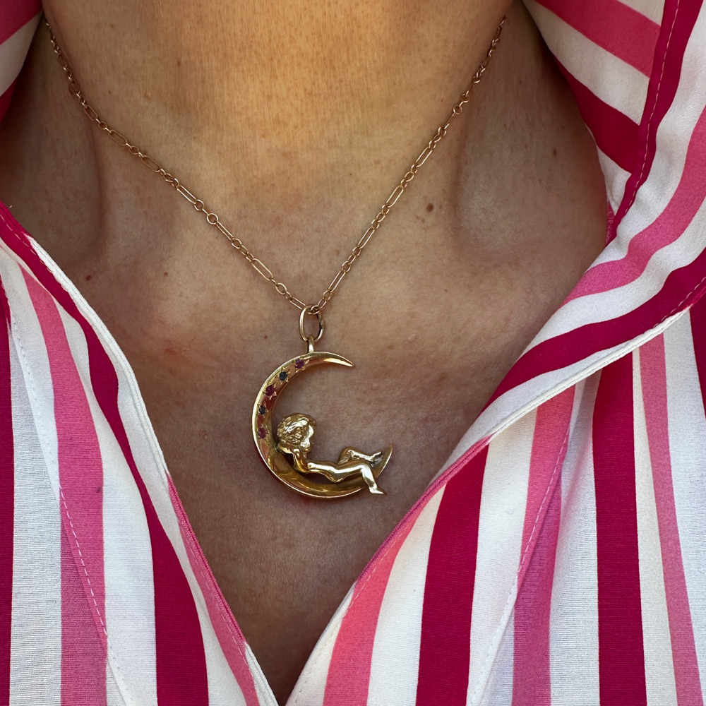 14K Yellow Gold Sapphire and Ruby Man in the Moon Charm