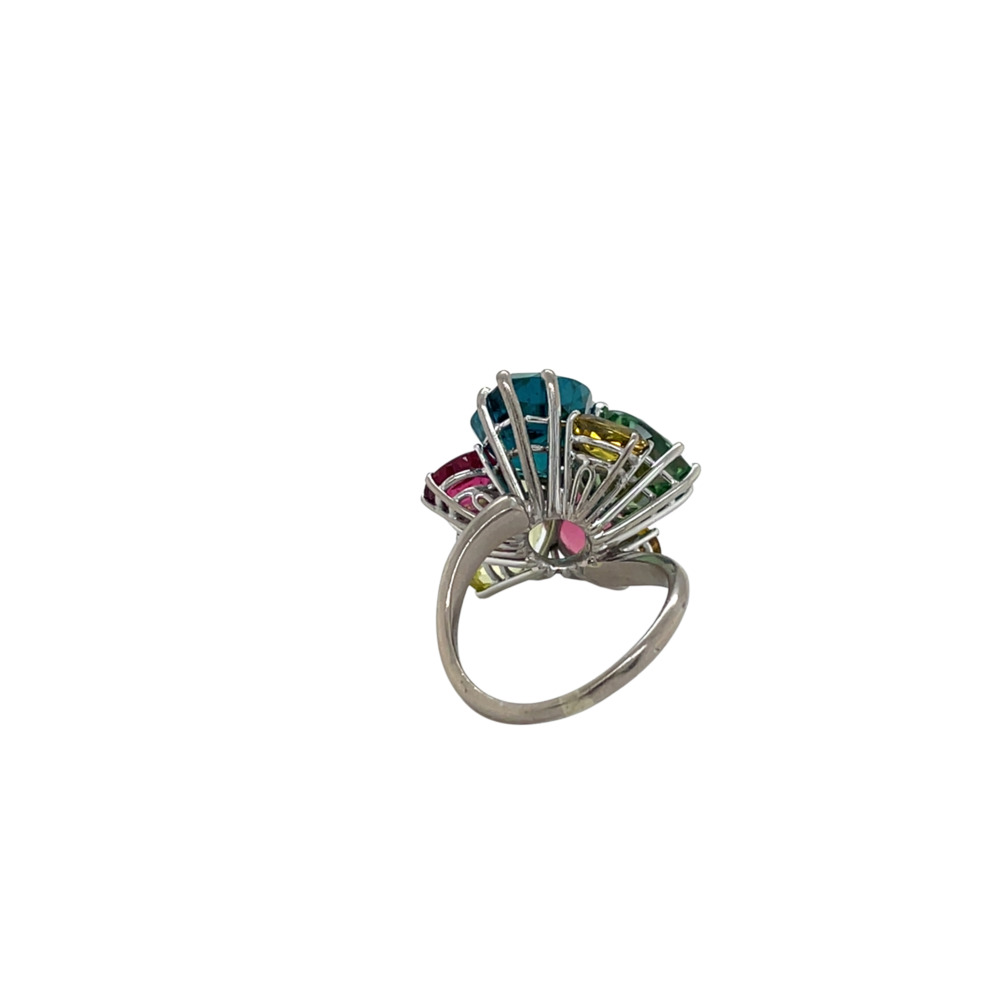 18K White Gold Multi-Color Stone and Diamond Ring