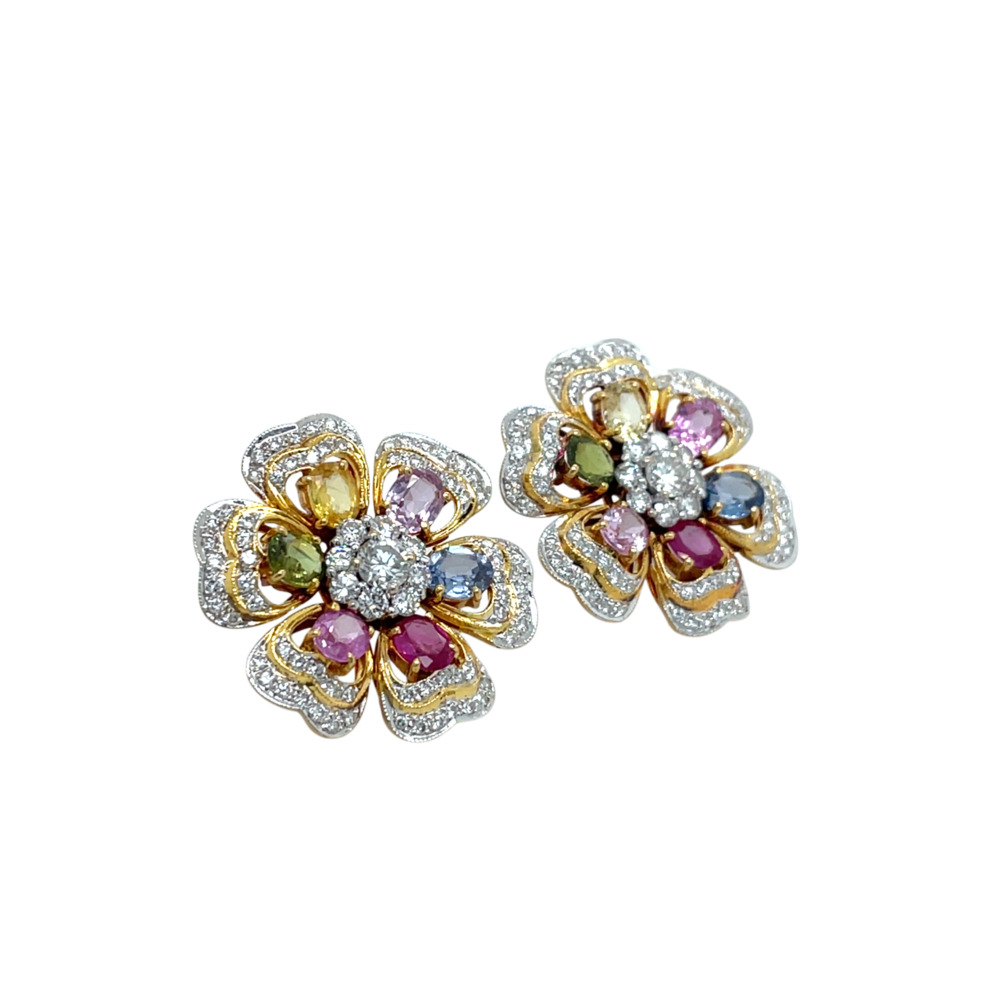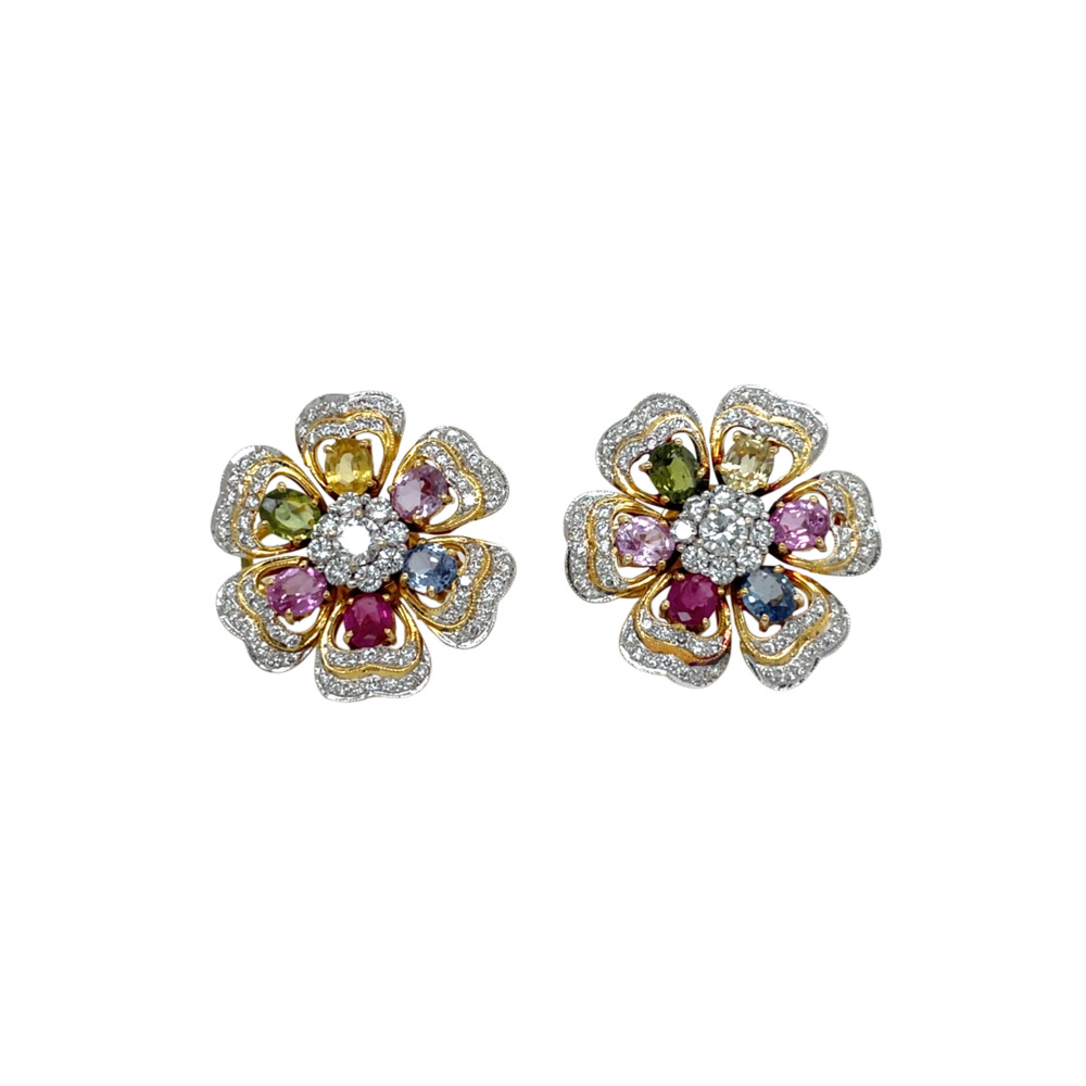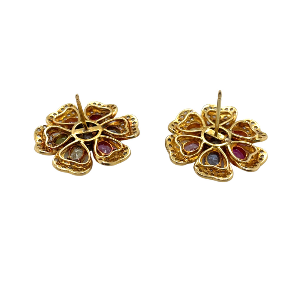 18K Yellow Gold Diamond and Multi-color Sapphire Earrings