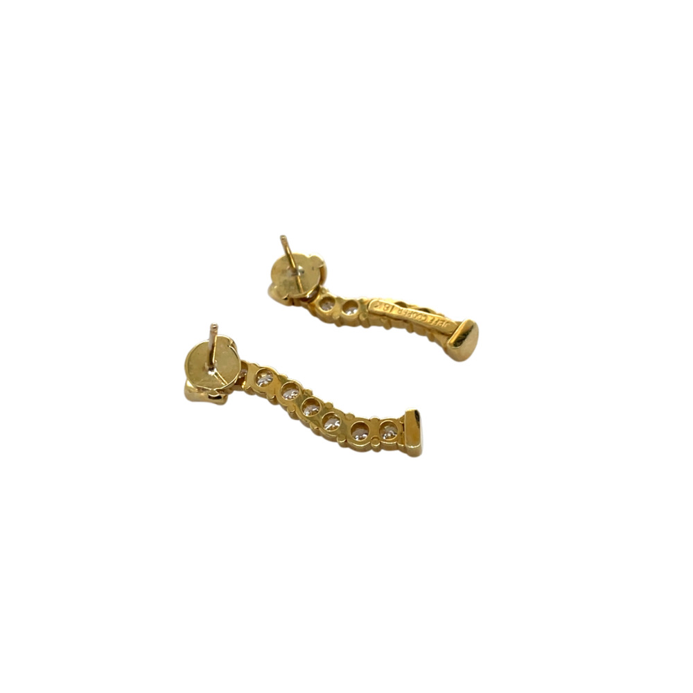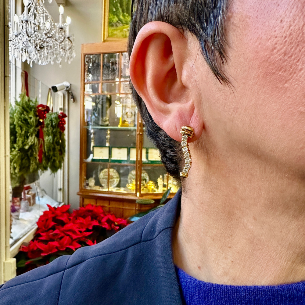 The twist wire style drop set with 14 round brilliant cut diamonds weighing approximately 2.0 carats total, measuring 1 1/8 inch long.