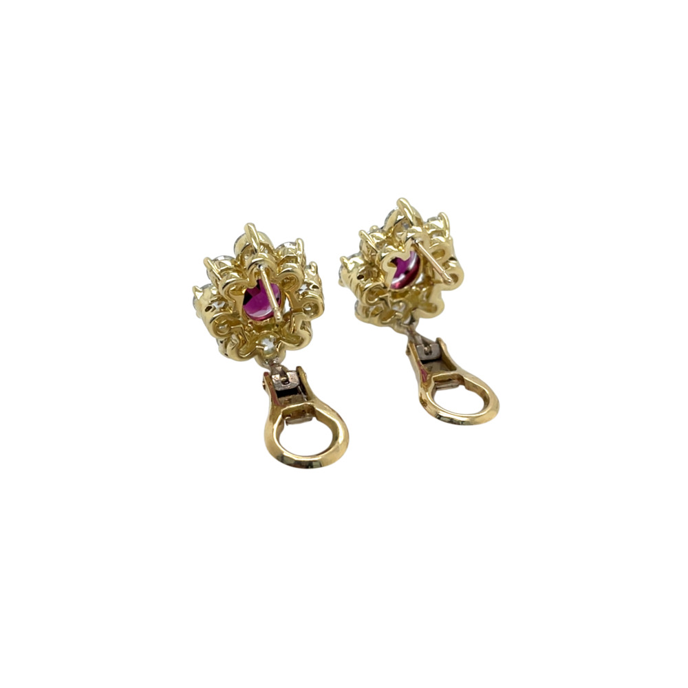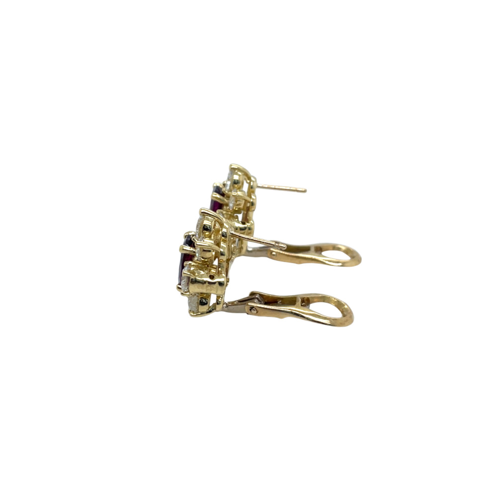 18K Yellow Gold Garnet and Diamond Earrings