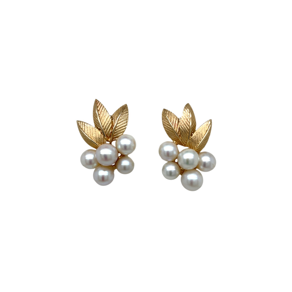 The floral motif is set with 10 cultured pearls measuring from 5.5 to 6.5mm, measuring 1 inch.
