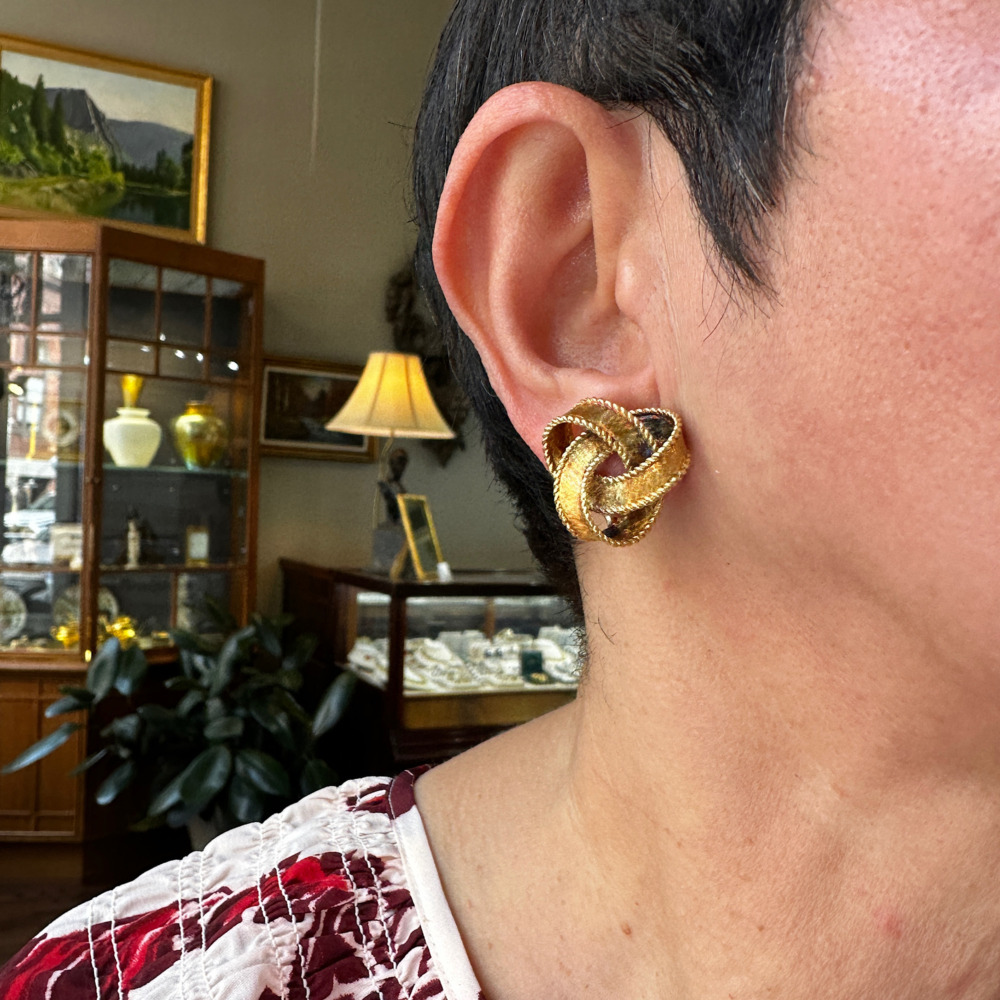 18K Yellow Gold Ribbon Bow Earrings