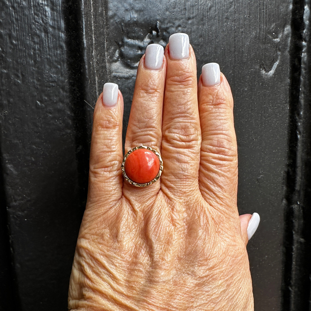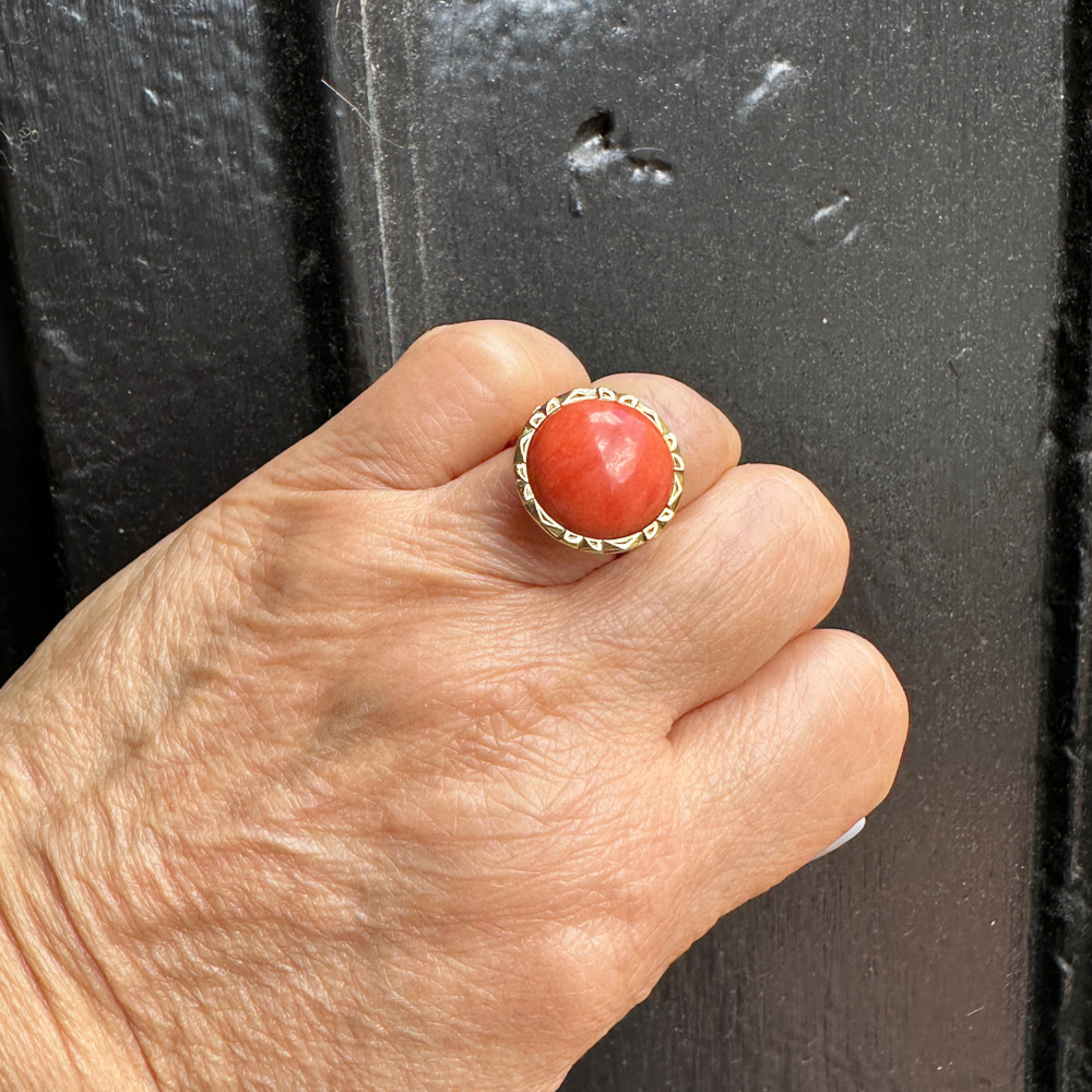 18K Yellow Gold Ring with Coral Stone