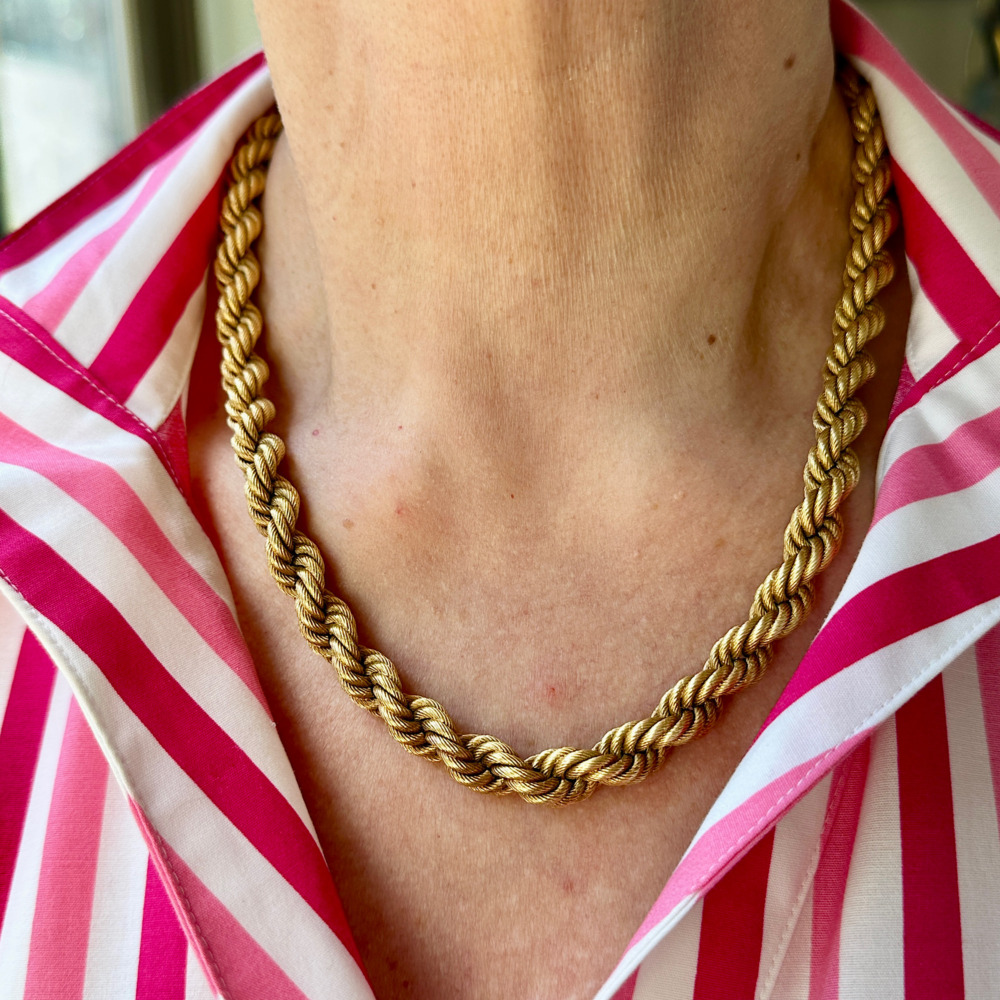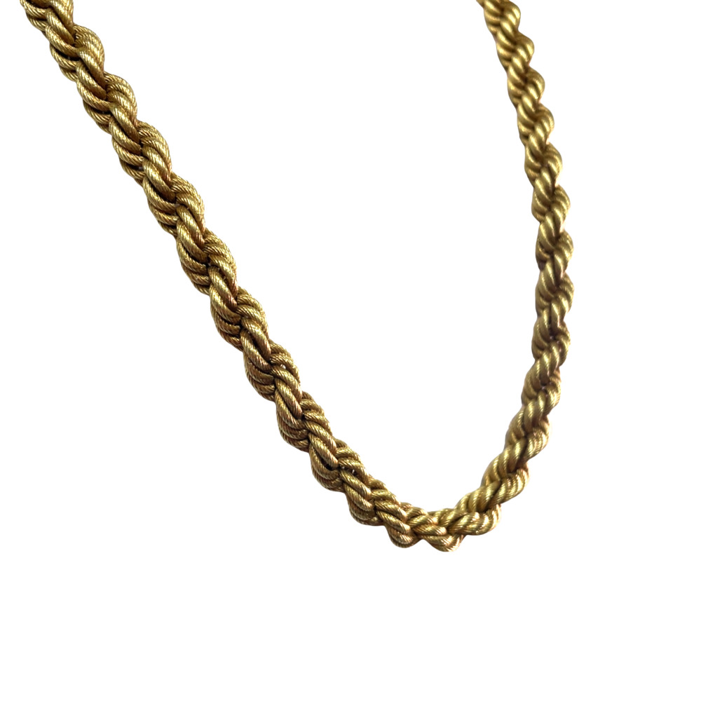 The rope style measuring 9.25mm wide, 21 inches long, weighing 39.3 dwts.