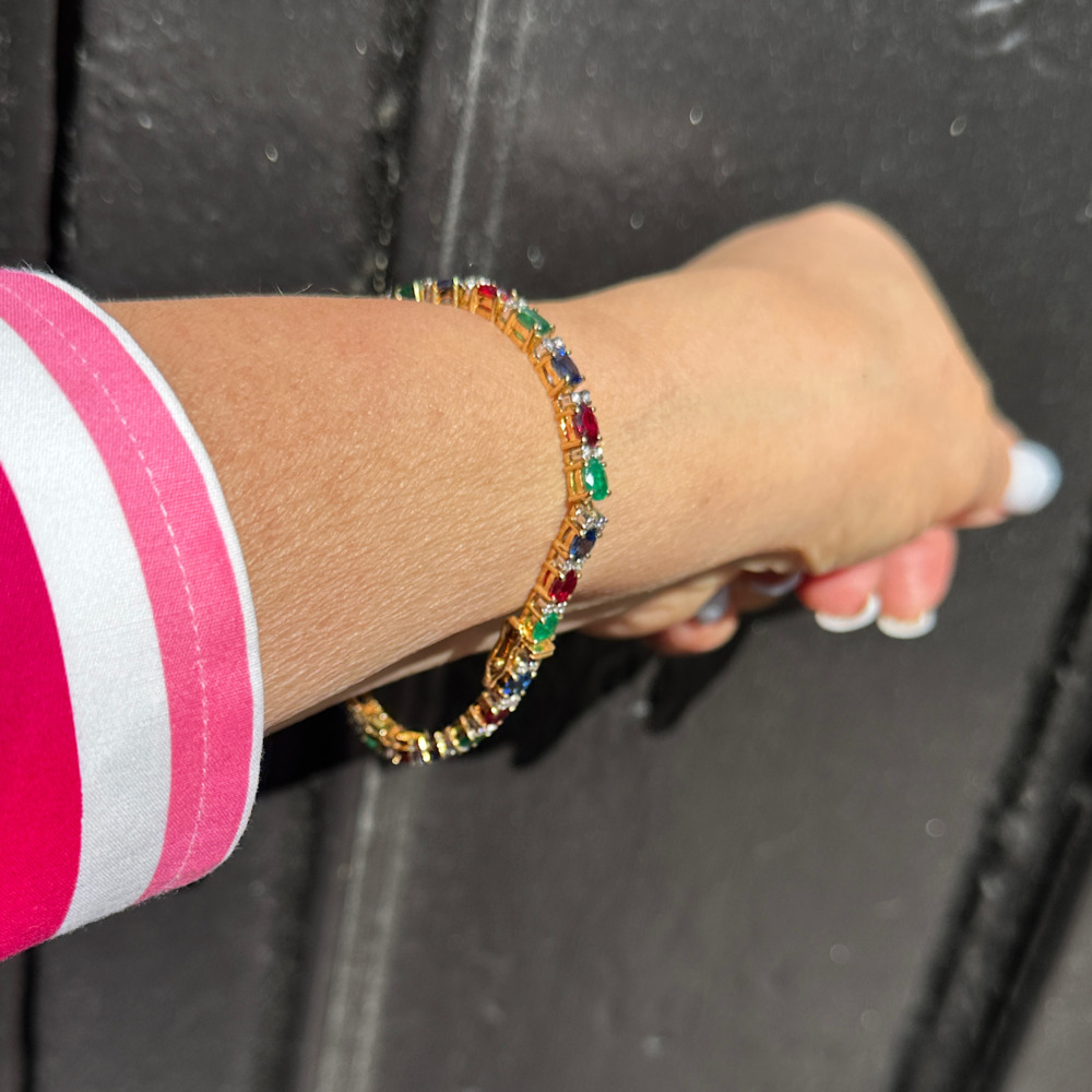 18K Yellow Gold, Sapphire, Ruby, Emerald, and Diamond Bracelet