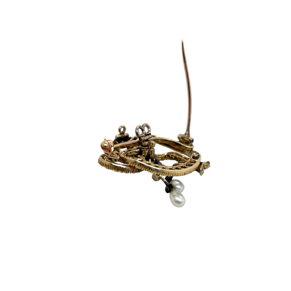 Antique 14K Yellow Gold Emerald, Diamond, and Pearl Brooch/Pendant