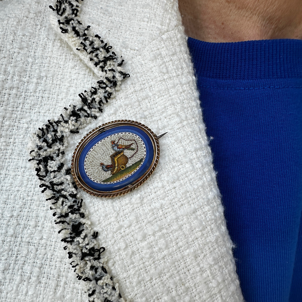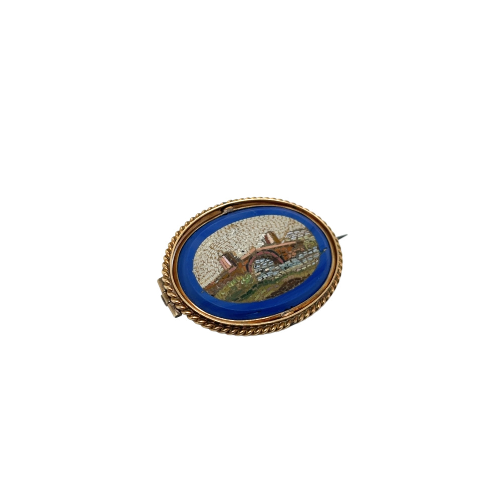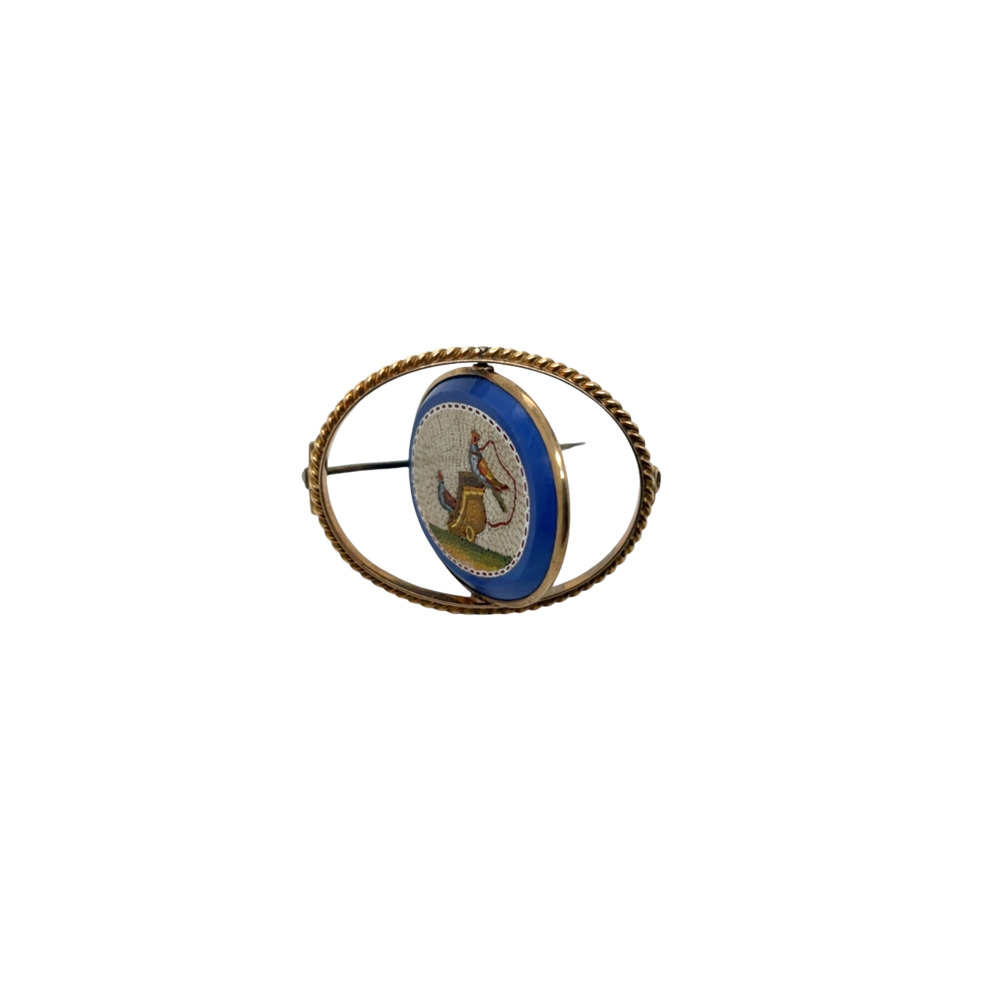 Antique 14K Yellow Gold Micro-Mosaic Reverse Brooch