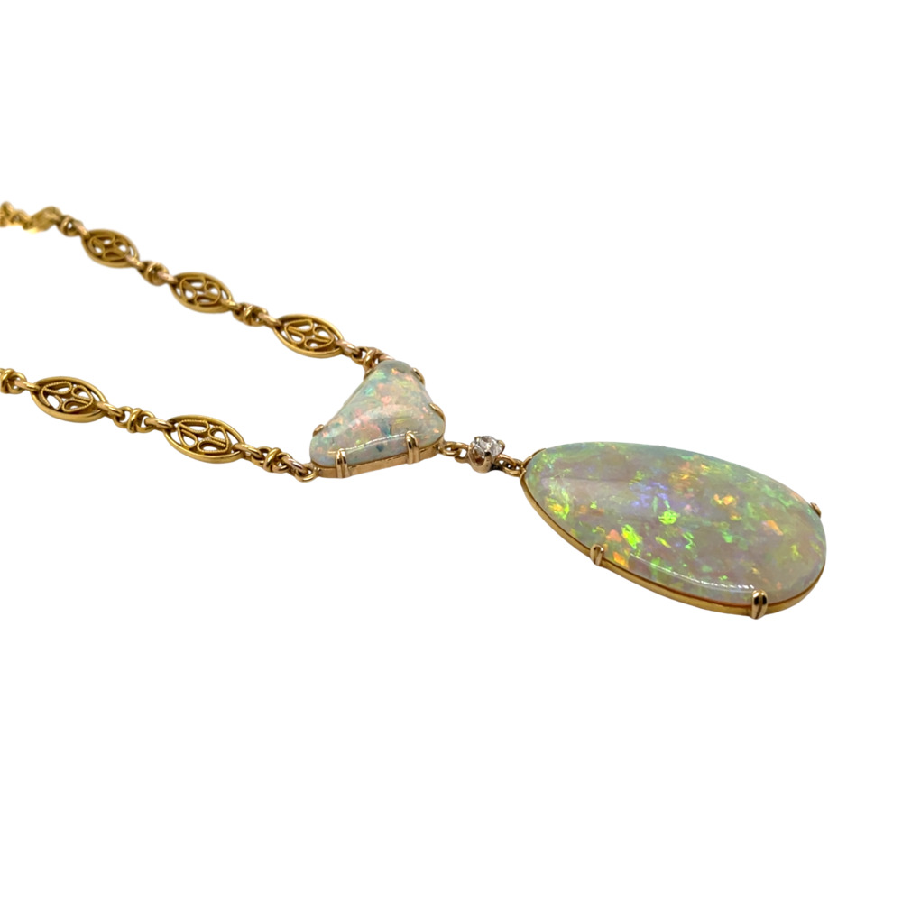 Antique 18K Yellow Gold Opal and Diamond Necklace