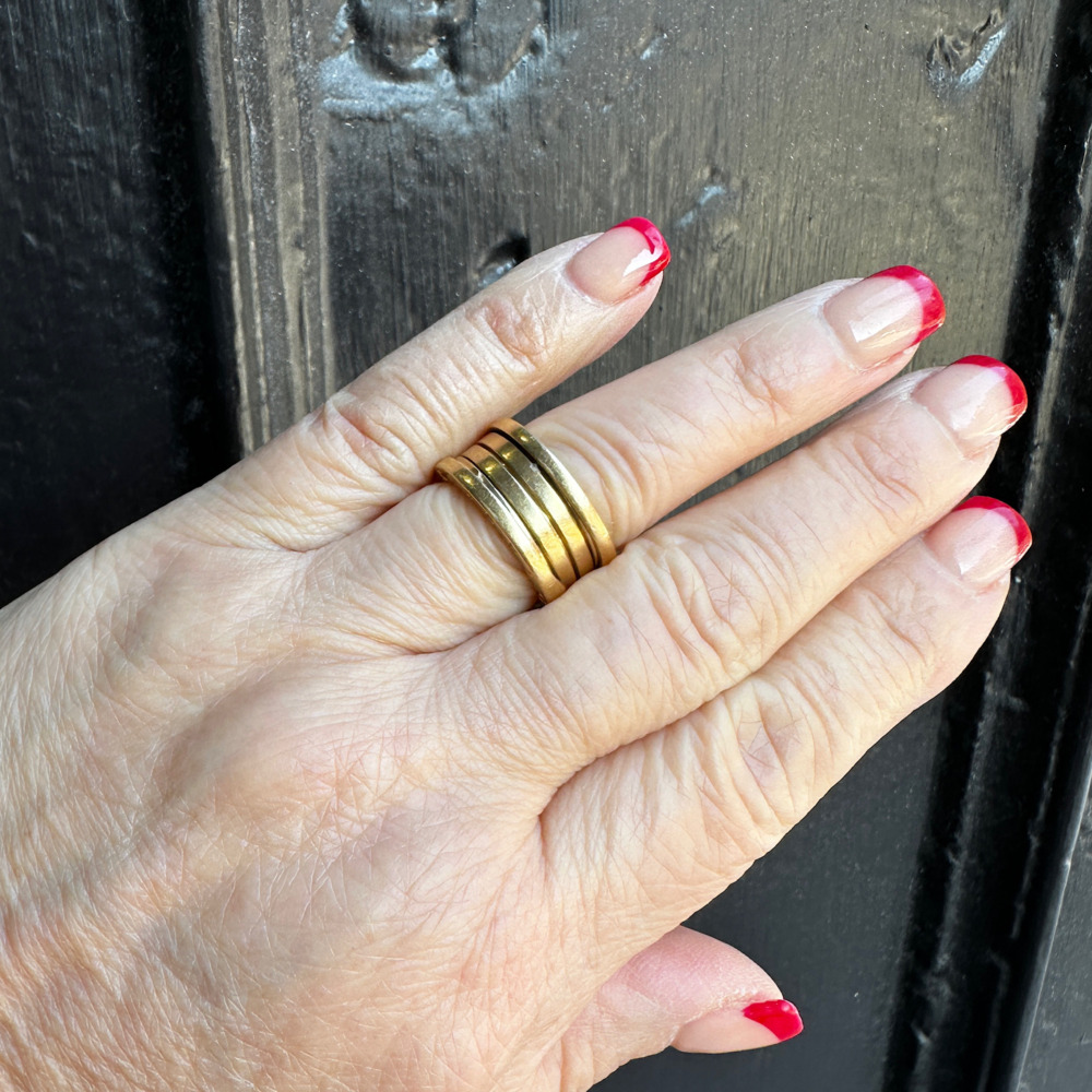 The cushion shaped interlocking rings measuring approximately 1 inch long and weighing 21.0 dwts.Stamp Gucci Italy 750