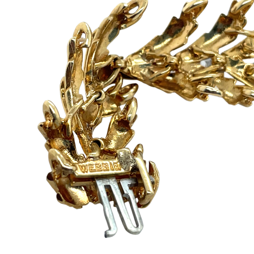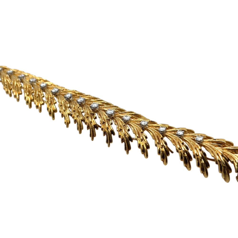 The graduated leaf motif links set with 15 round brilliant cut diamonds weighing approximately 1.50 carats total, measuring 19.8 mm wide at the center.