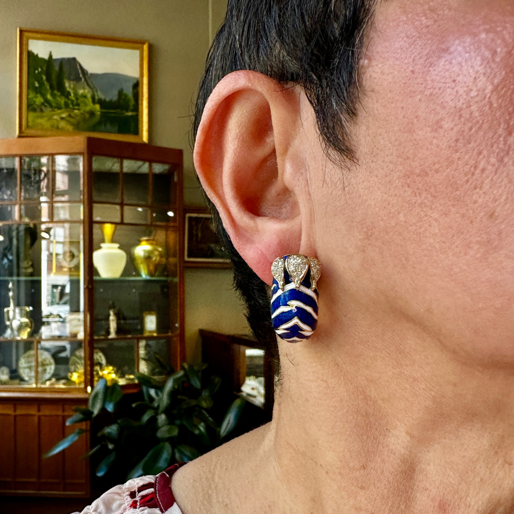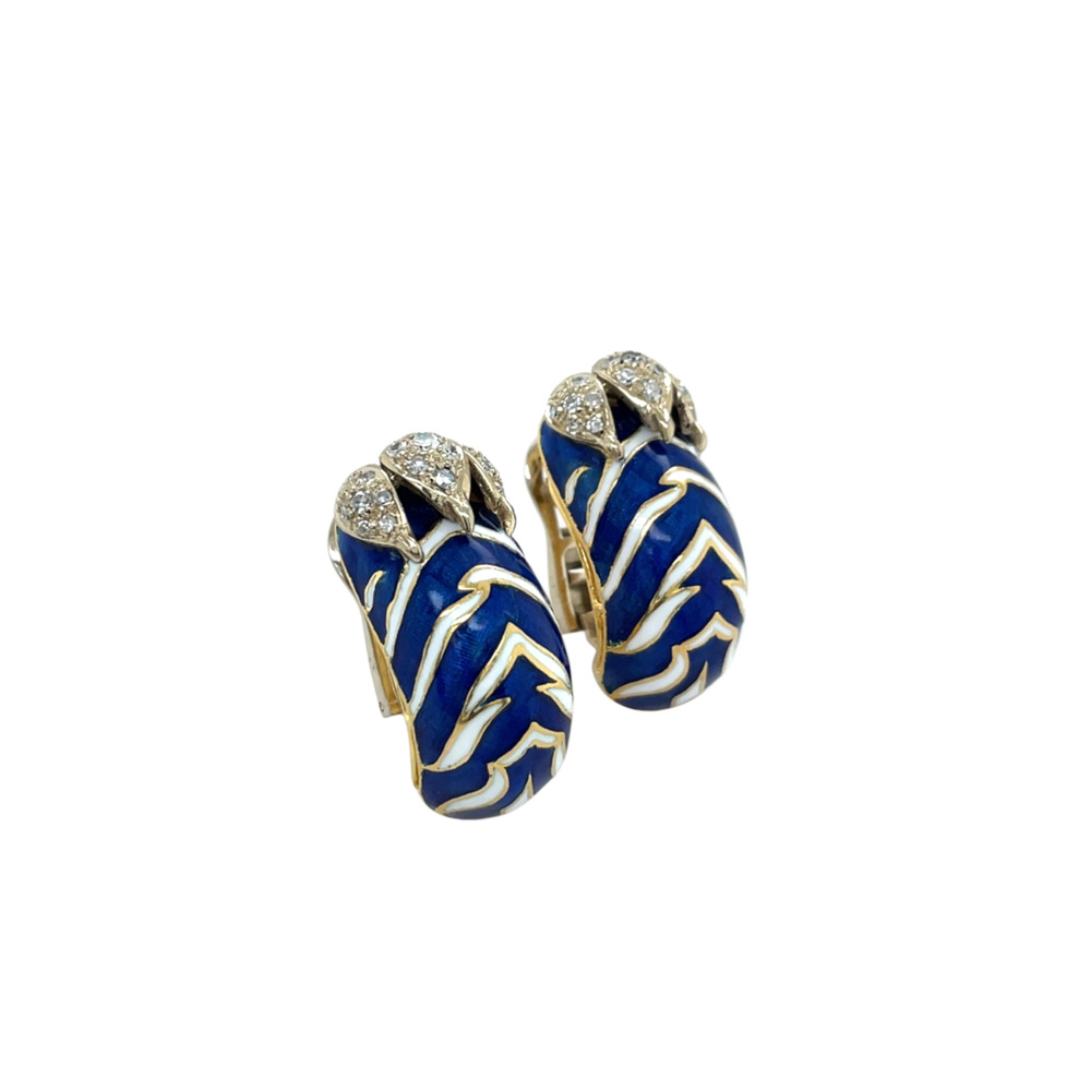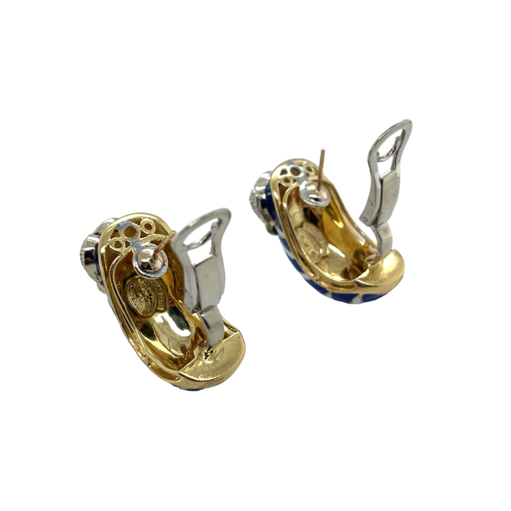 Frascarolo 18K Yellow Gold Diamond Enamel Earrings