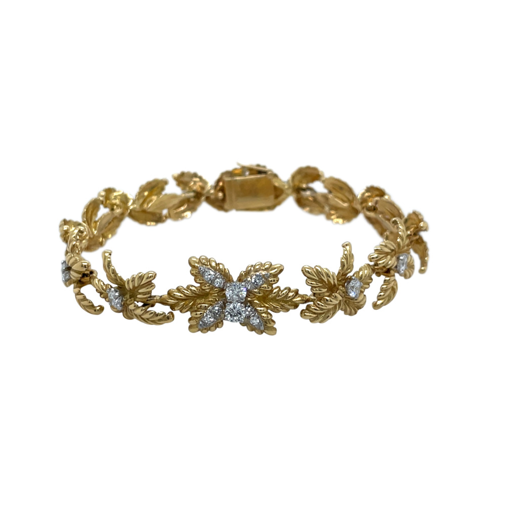 The Leaf motif links set with 20 small round brilliant-cut diamonds, weighing approximately 2.0 carats total.