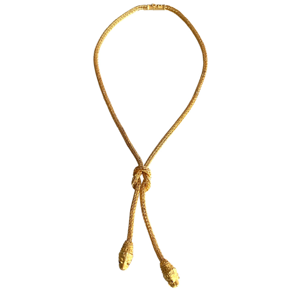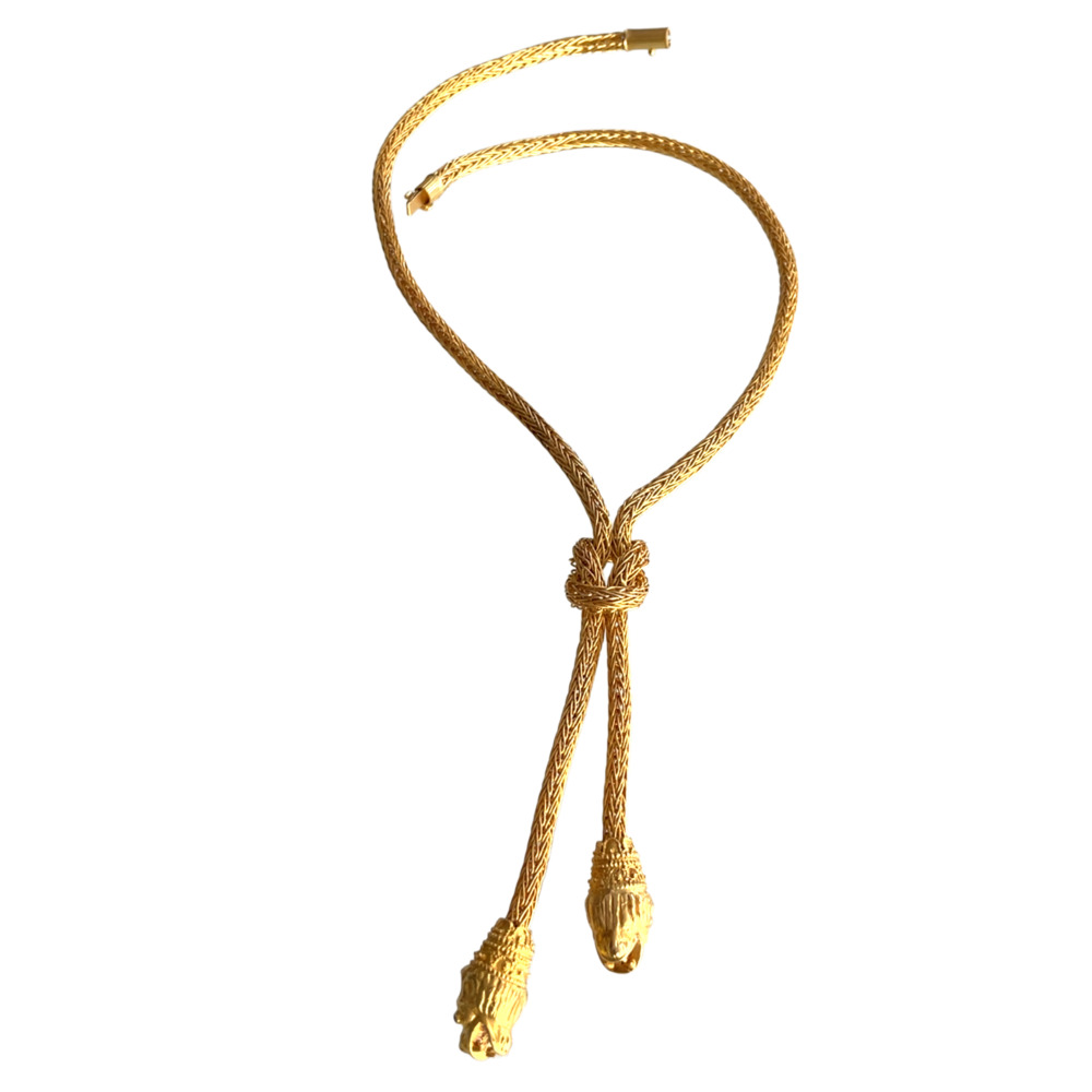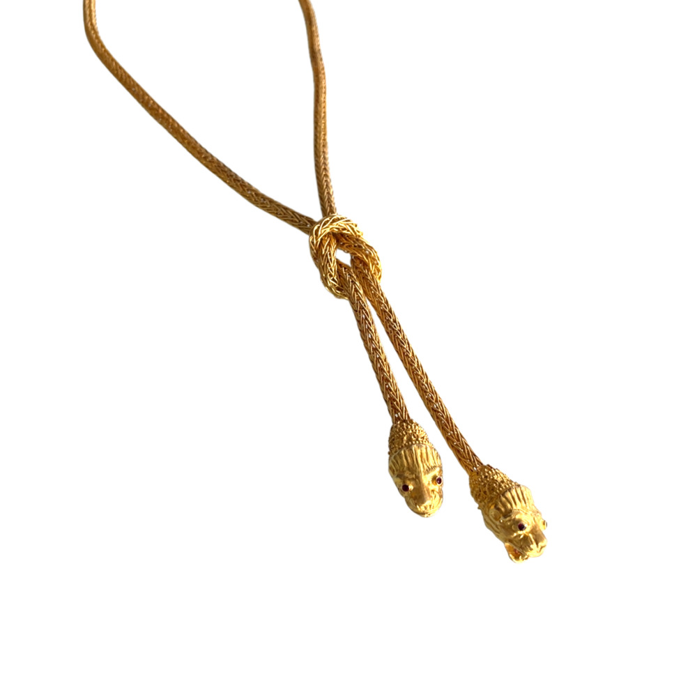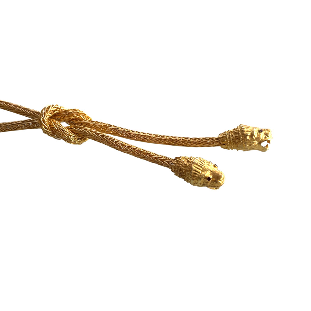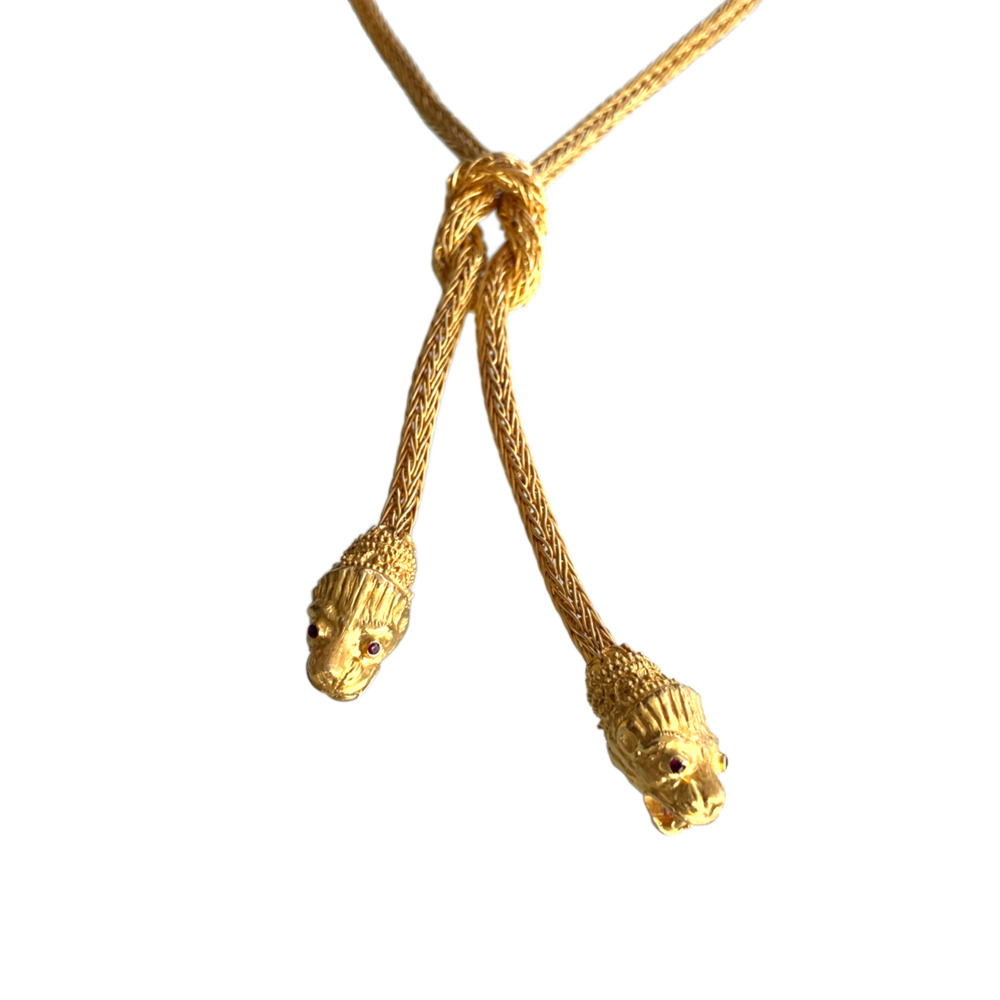 The Byzantine motif chain with a Hercules knot and two lion heads, measuring 17 inches long with a 4-inch drop.
