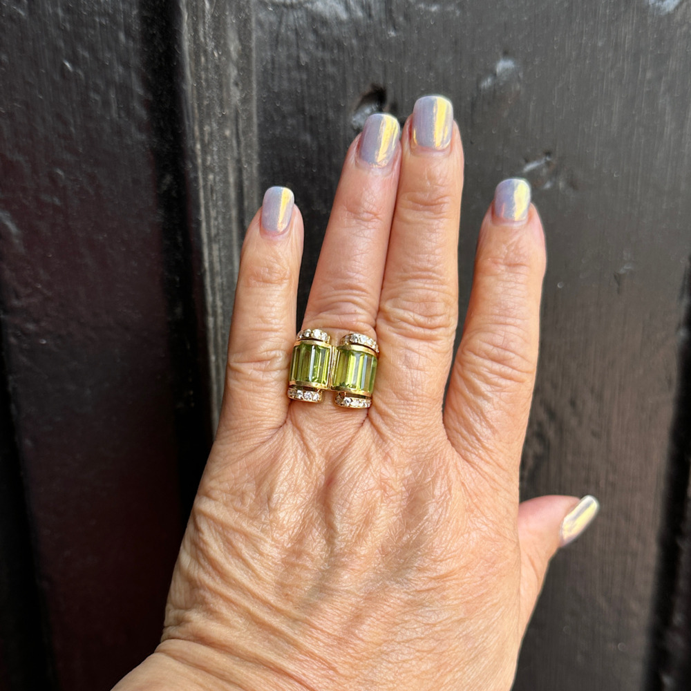 Sabbadini 18K Yellow Gold Peridot and Diamond Ring