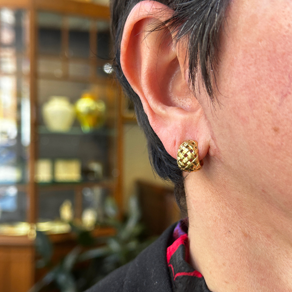 The basket-weave design, mini size, weighing 5.9 dwts.