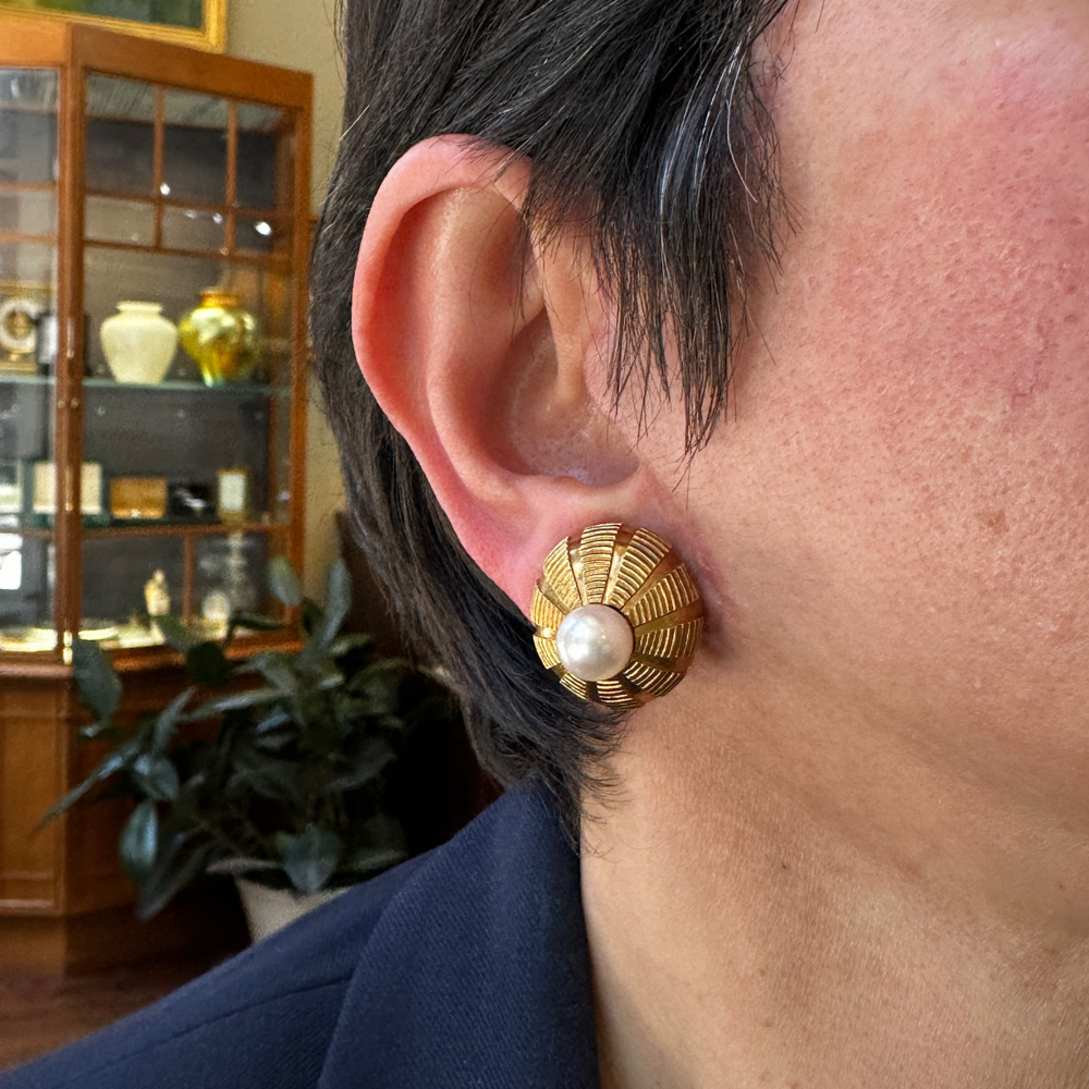 Tiffany & Co. 18K Yellow Gold Pearl Taj Mahal Earrings