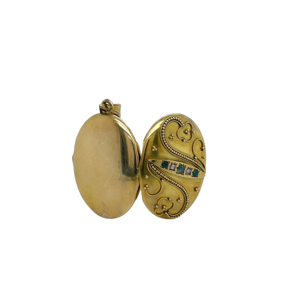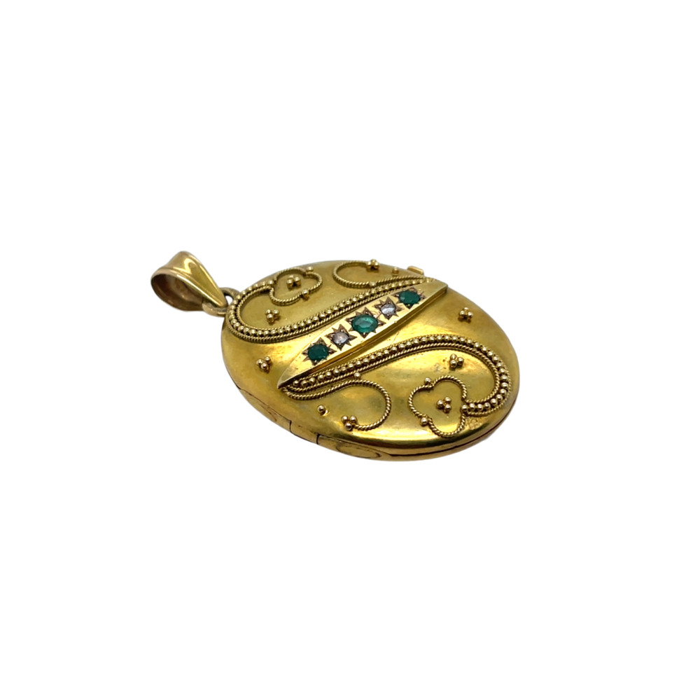 Victorian 18K Yellow Gold Emerald and Diamond Locket