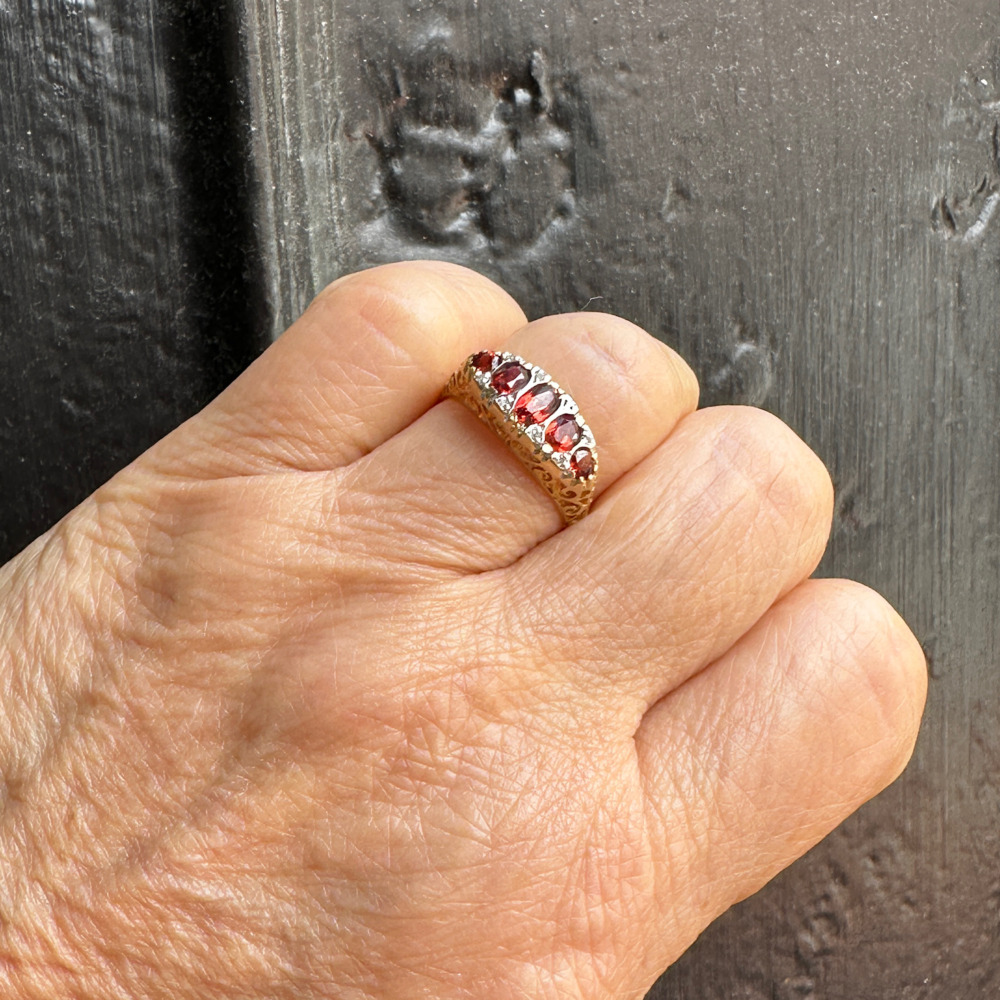 Vintage 14K Yellow Gold Garnet and Diamond Band