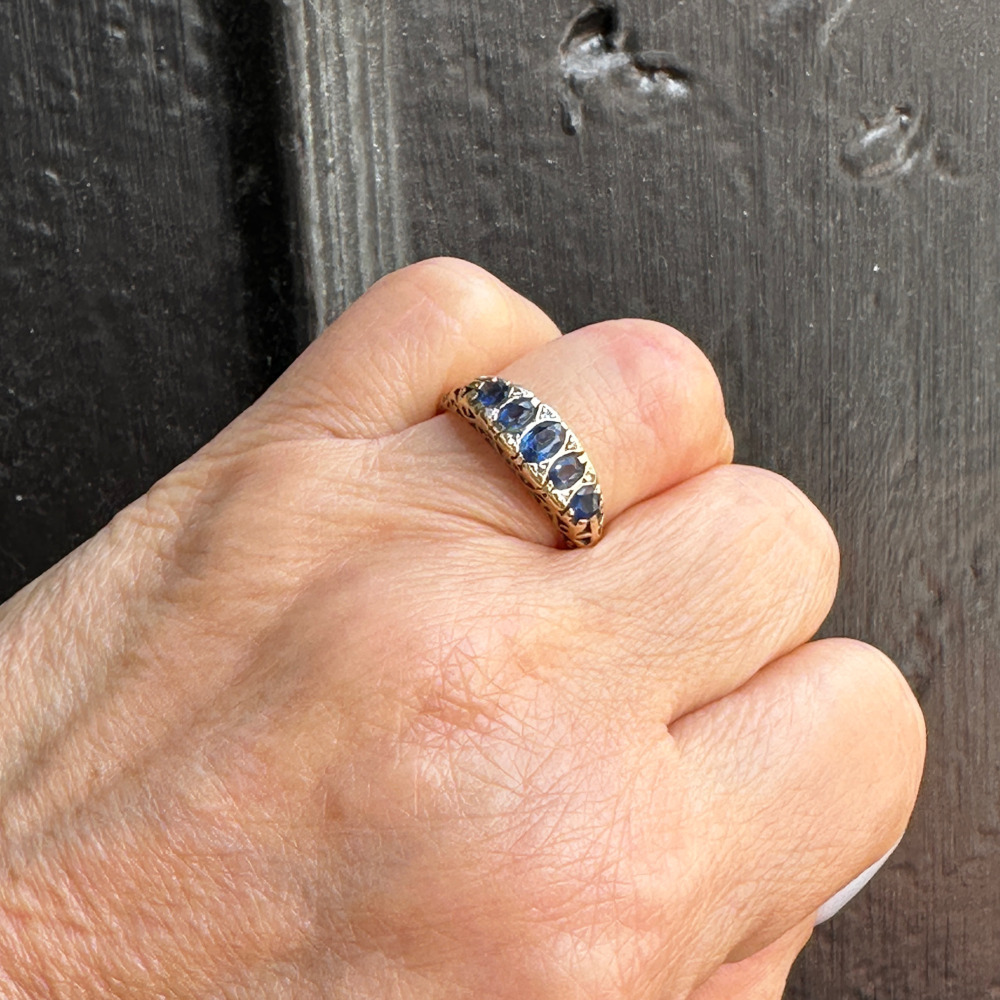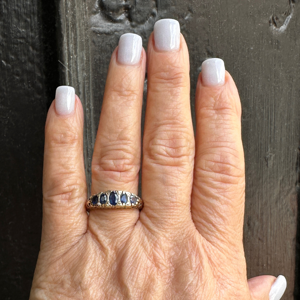 Vintage 14K Yellow Gold Sapphire and Diamond Band