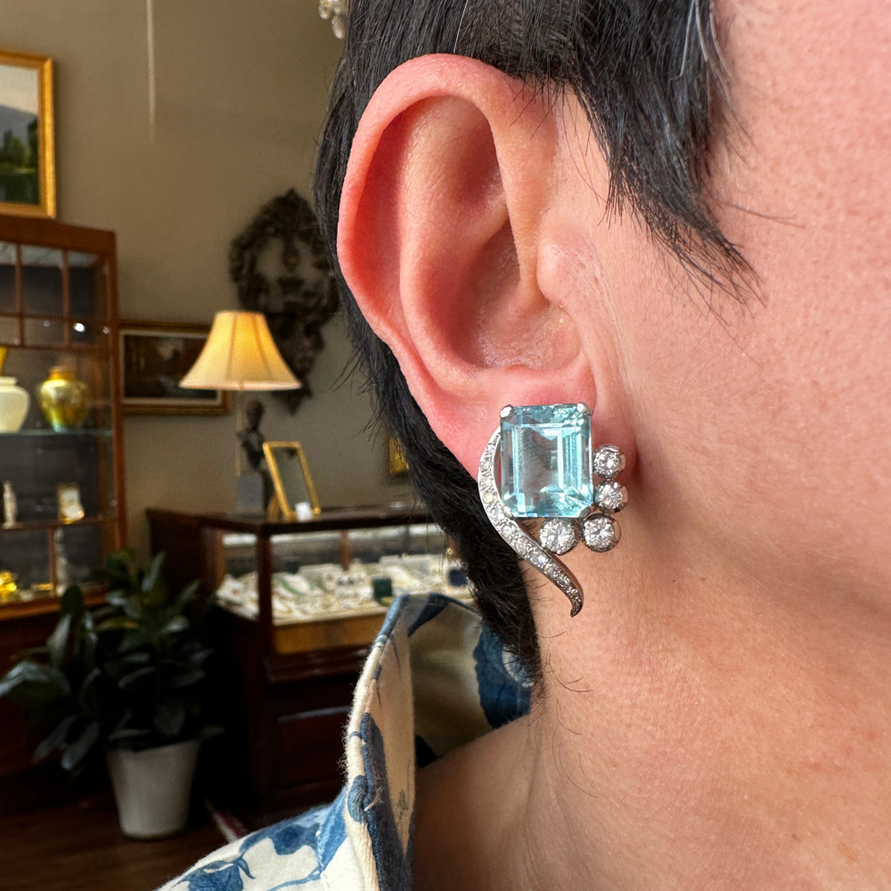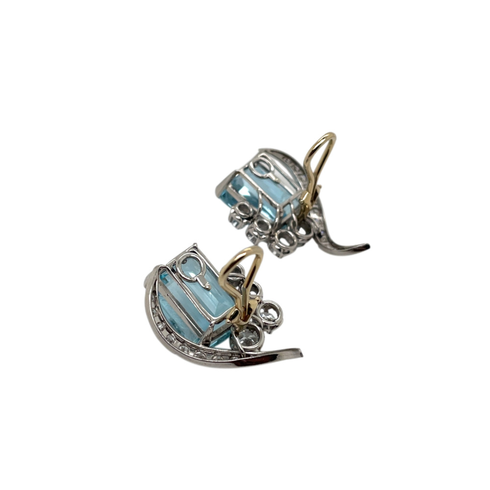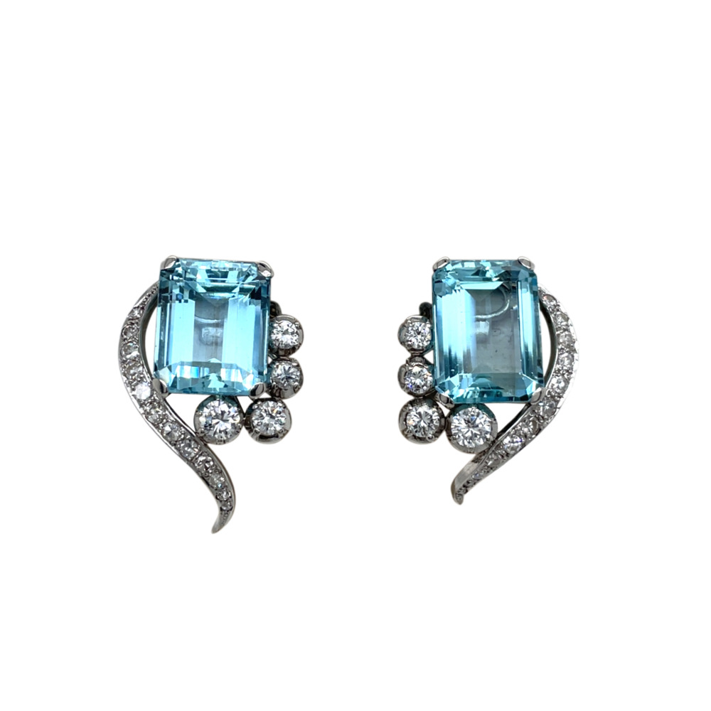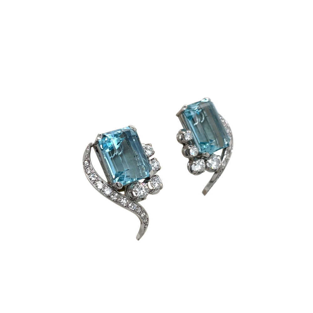 Vintage Platinum Aquamarine and Diamond Earrings